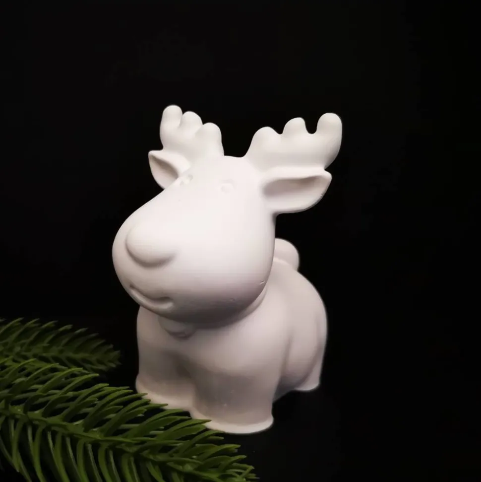 Ein Wichtel ist ca. 9 bis 10 cm groß , das Rentier ca. 9,50 cm und kann in puristischem Weiß oder verziert in erworben werden.