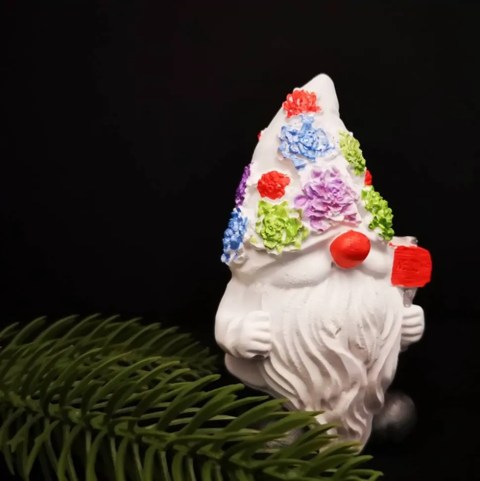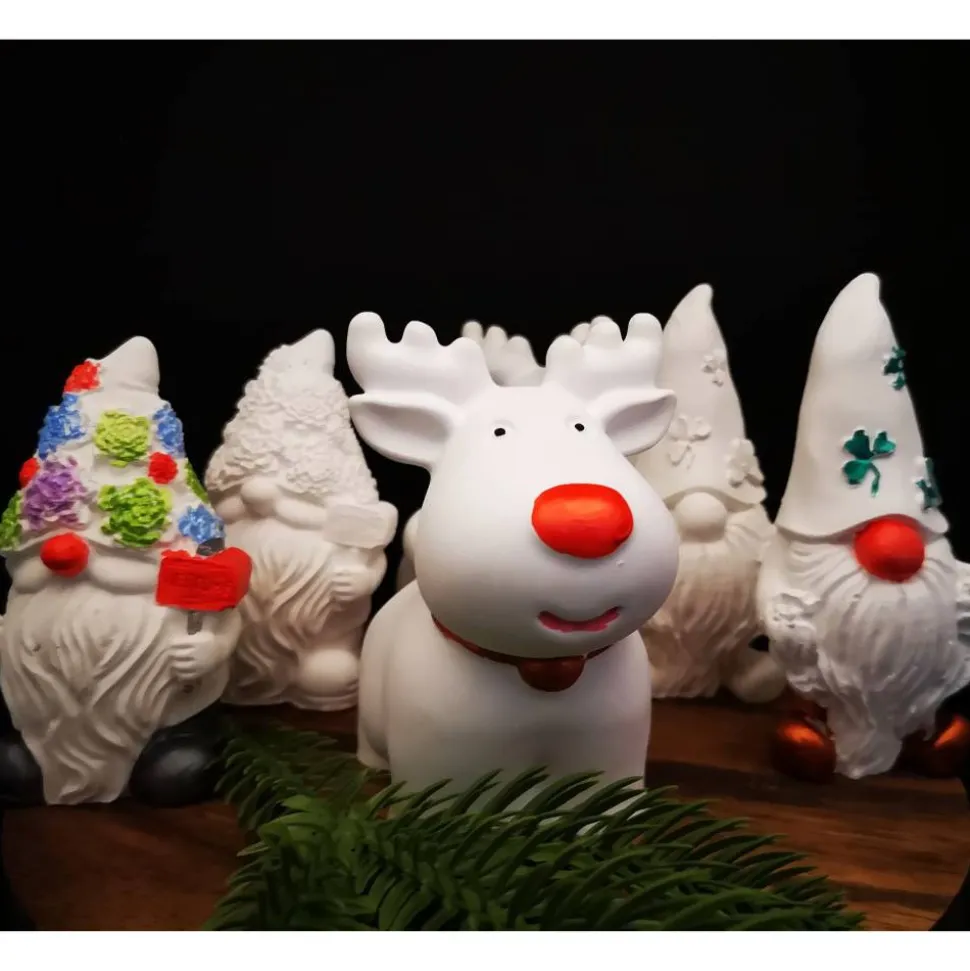 Ein Wichtel ist ca. 9 bis 10 cm groß , das Rentier ca. 9,50 cm und kann in puristischem Weiß oder verziert in erworben werden.