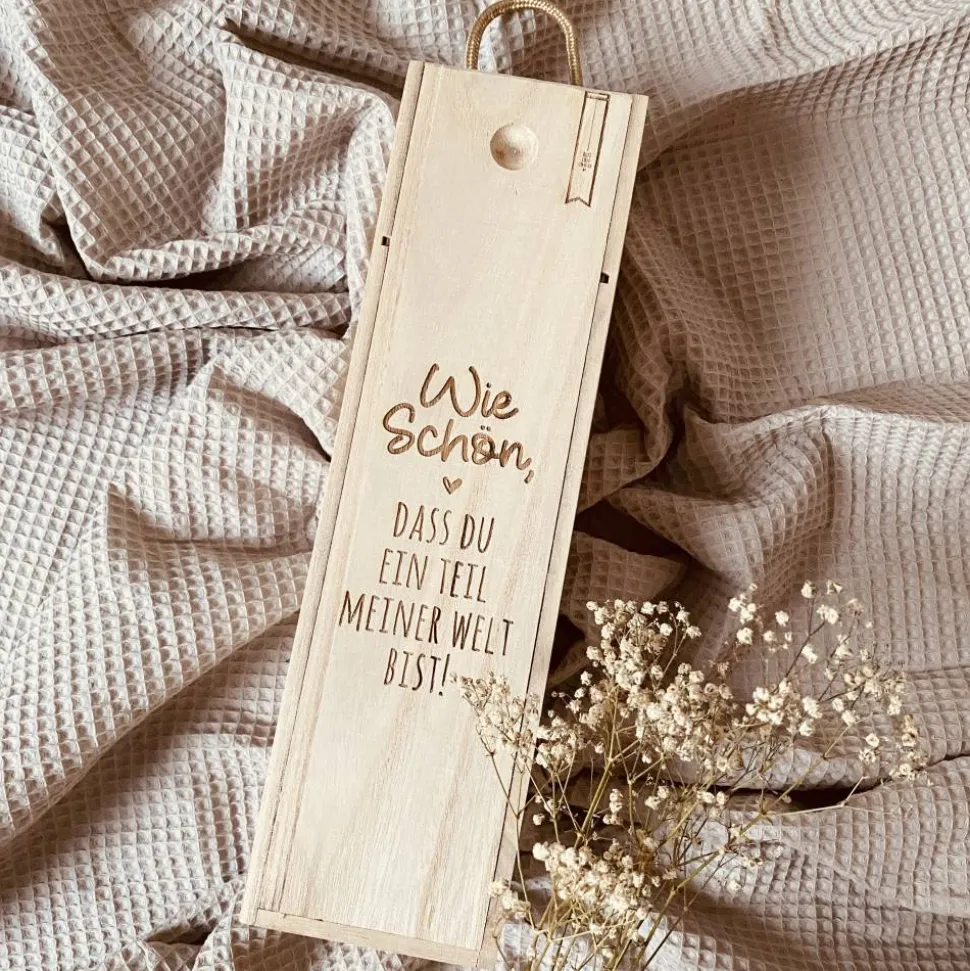 Die Weinboxen sind aus hochwertigem Holz gefertigt und bieten Platz für eine Flasche Wein. Gestalten Sie jetzt Ihre persönliche Weinbox!