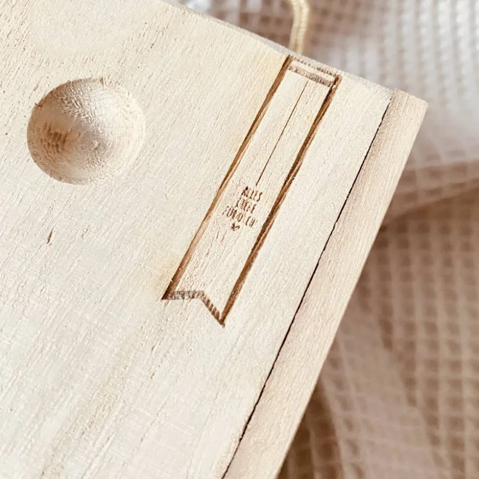● Kiefernholz mit Schiebedeckel und Kordelgriff