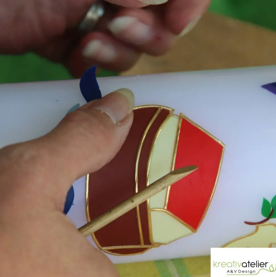 Alle Ornamente auf der Taufkerze werden einzeln von Hand aus verschiedenen Wachsplatten ausgeschnitten, bevor sie kunstvoll auf der Kerze zu einem Gesamtbild arrangiert werden. Jedes Ornament wird mit viel Liebe zum Detail gestaltet und sorgfältig auf die Kerze aufgetragen. Echte mühevolle Handarbeit. Kein Druck. Keine aufgeklebte Folie.