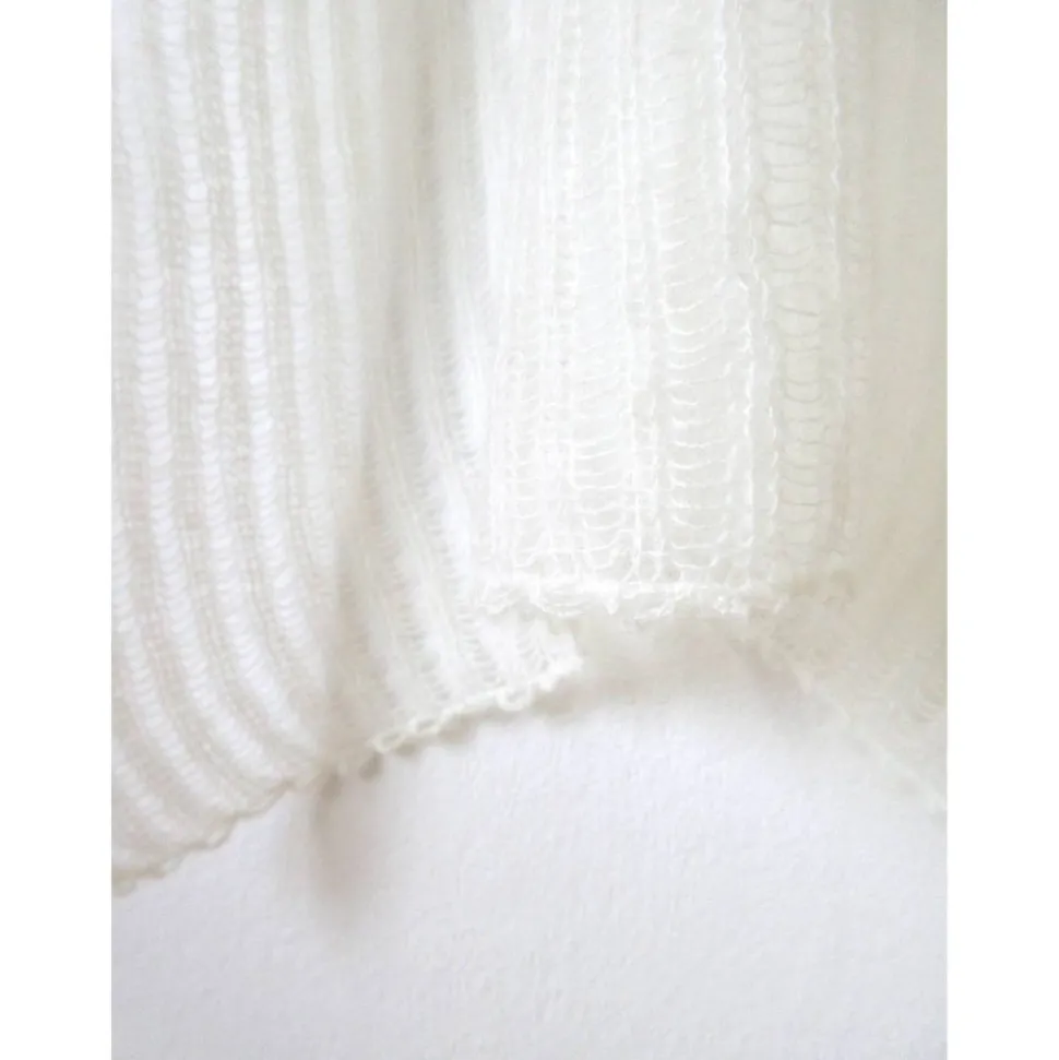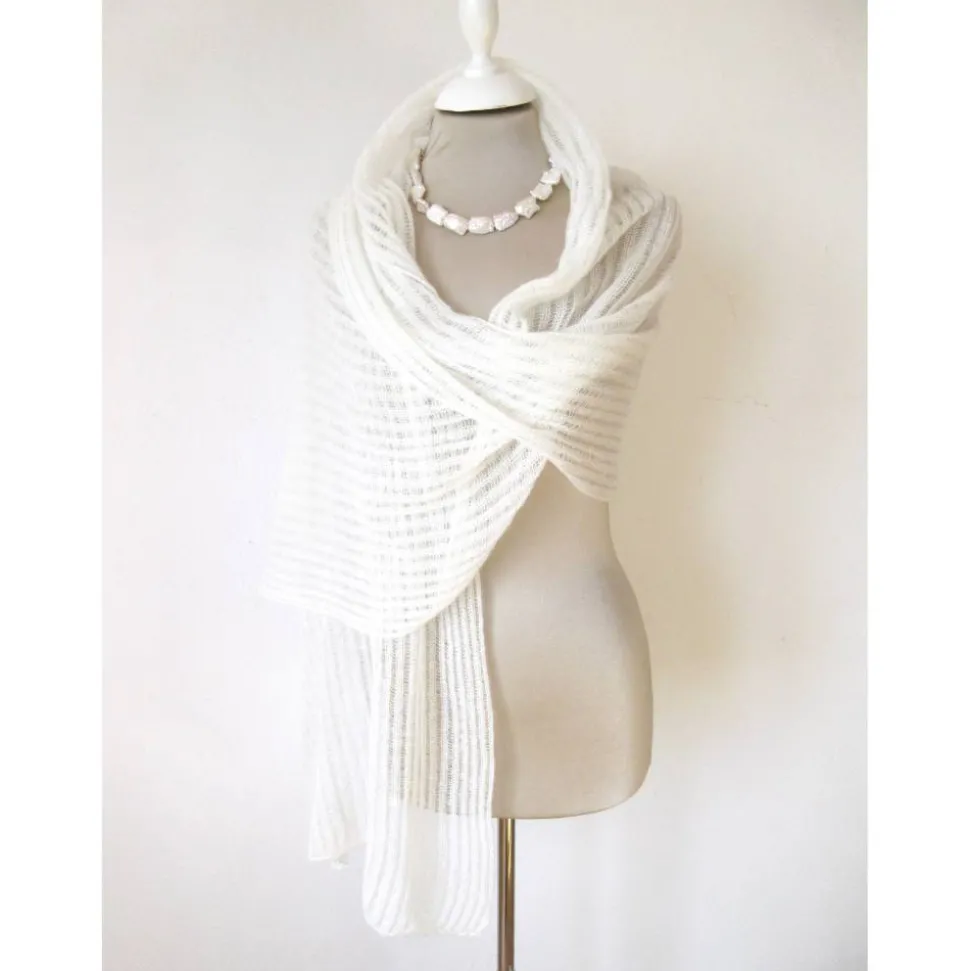 Wie eine Wolke auf der Haut, wärmt das Tuch auf sanfte Weise und ergänzt auf zurückhaltende Art das Festtagsoutfit.