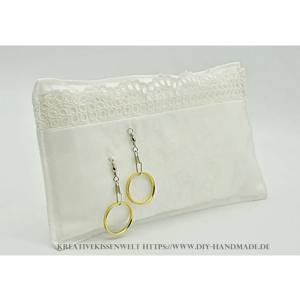 Entdecke ein einzigartiges Ringkissen für Deine Hochzeit: Dieses edle, weiße Ringträgerkissen ist mit breiter Spitze aus reiner Baumwolle verziert und bietet Dir eine außergewöhnliche Präsentation der Trauringe.