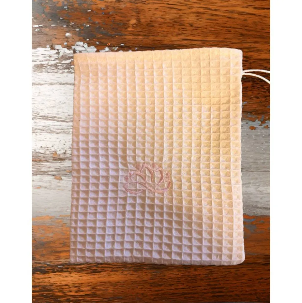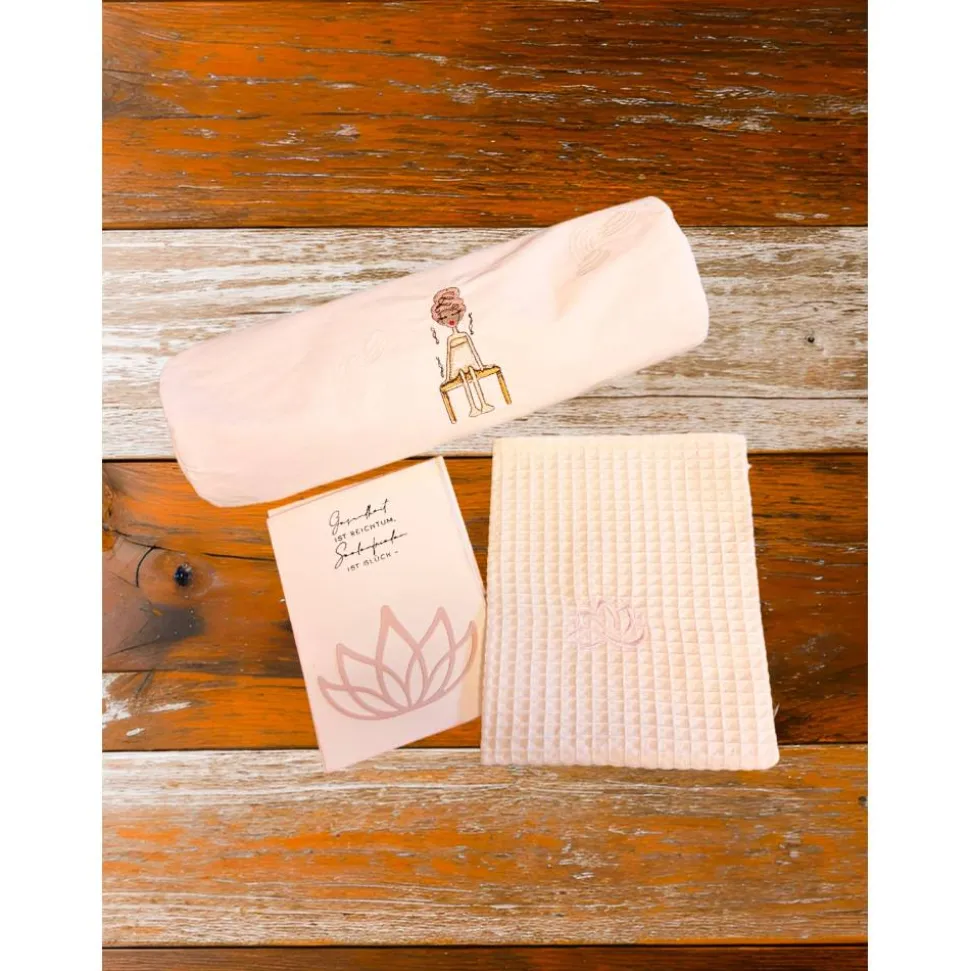 – passender Wellness-Waschlappen mit einer Lotusblüte zart bestickt