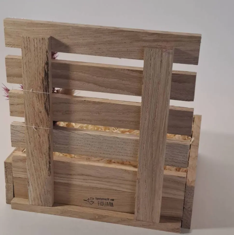 Alle Produkte sind in einer rustikalen Holzkiste arrangiert, die Du später als Aufbewahrung, Deko oder Geschenkverpackung weiterverwenden kannst.