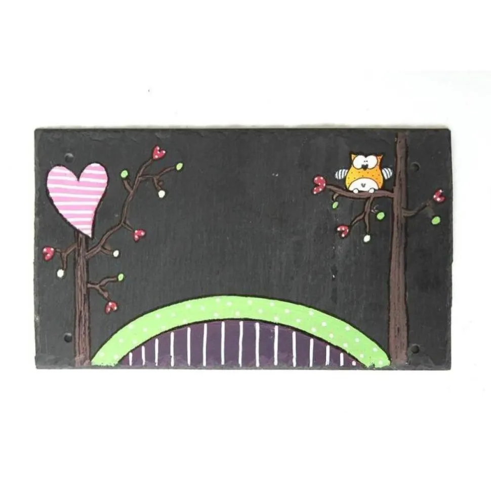Der Schiefer wird vorbehandelt, mit speziellem Schieferöl poliert und mit hochwertigen Farben bemalt. Zur Reinigung genügt ein feuchtes Tuch. Schiefer ist ein 100%iges Naturprodukt, ökologisch wertvoll und einzigartig in Struktur und Kanten.