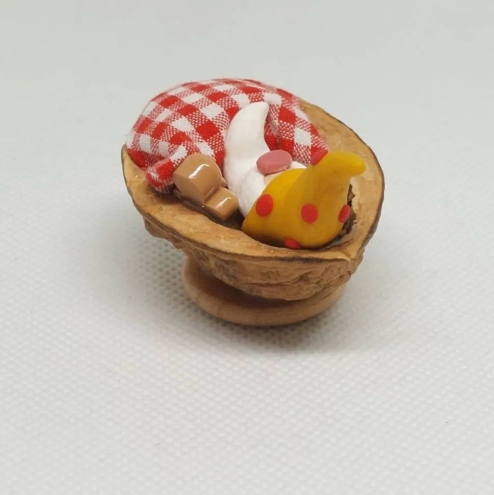 Ein zauberhaftes Unikat für deine Weihnachtsdeko: In einer echten Walnussschale schläft ein kleiner Wichtel mit goldiger