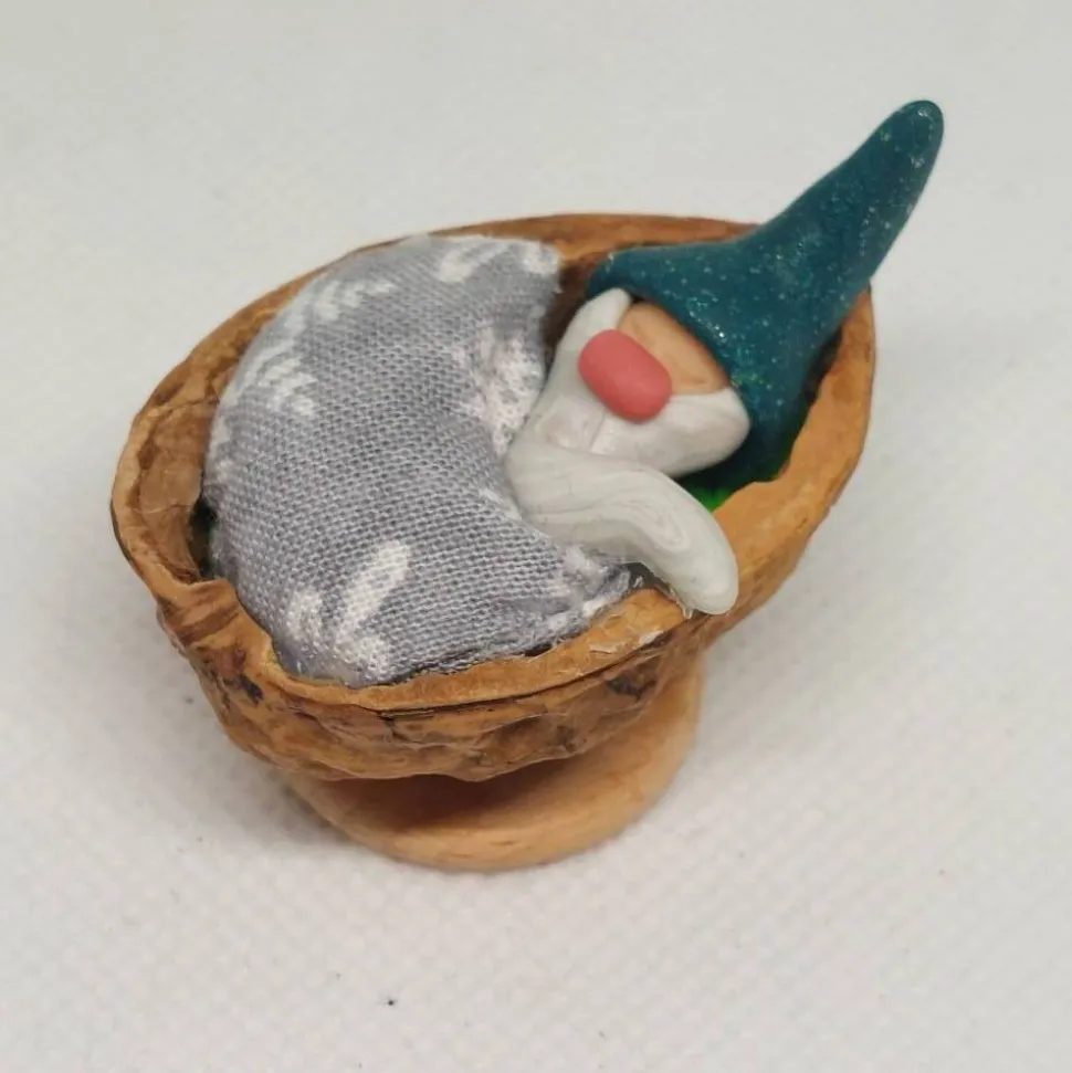 Wichtel im Walnussbettchen zum hinstellen