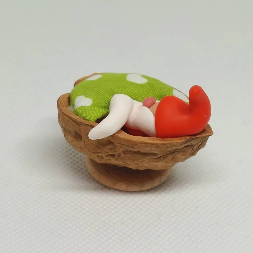 Wichtel im Walnussbettchen zum hinstellen