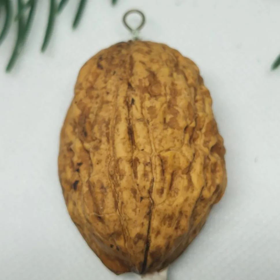 Die natürliche Struktur der Walnussschale verleiht jedem Stück seinen eigenen rustikalen Charme. Durch die kleine Öse am oberen Ende lässt sich der Anhänger mühelos an Weihnachtsbaum, Geschenk, Adventskranz oder Fensterdeko befestigen.