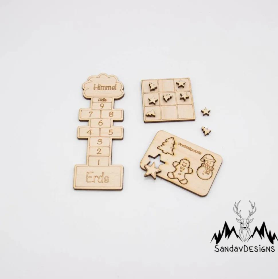 Jedes Spiel kommt in einer eigenen kleinen Verpackung, sodass sie leicht aufbewahrt und transportiert werden können. Das Set ist nicht nur ein fantastisches Spielzeug für Wichtel, sondern auch eine wunderbare Dekoration für Ihr Zuhause in der Weihnachtszeit.