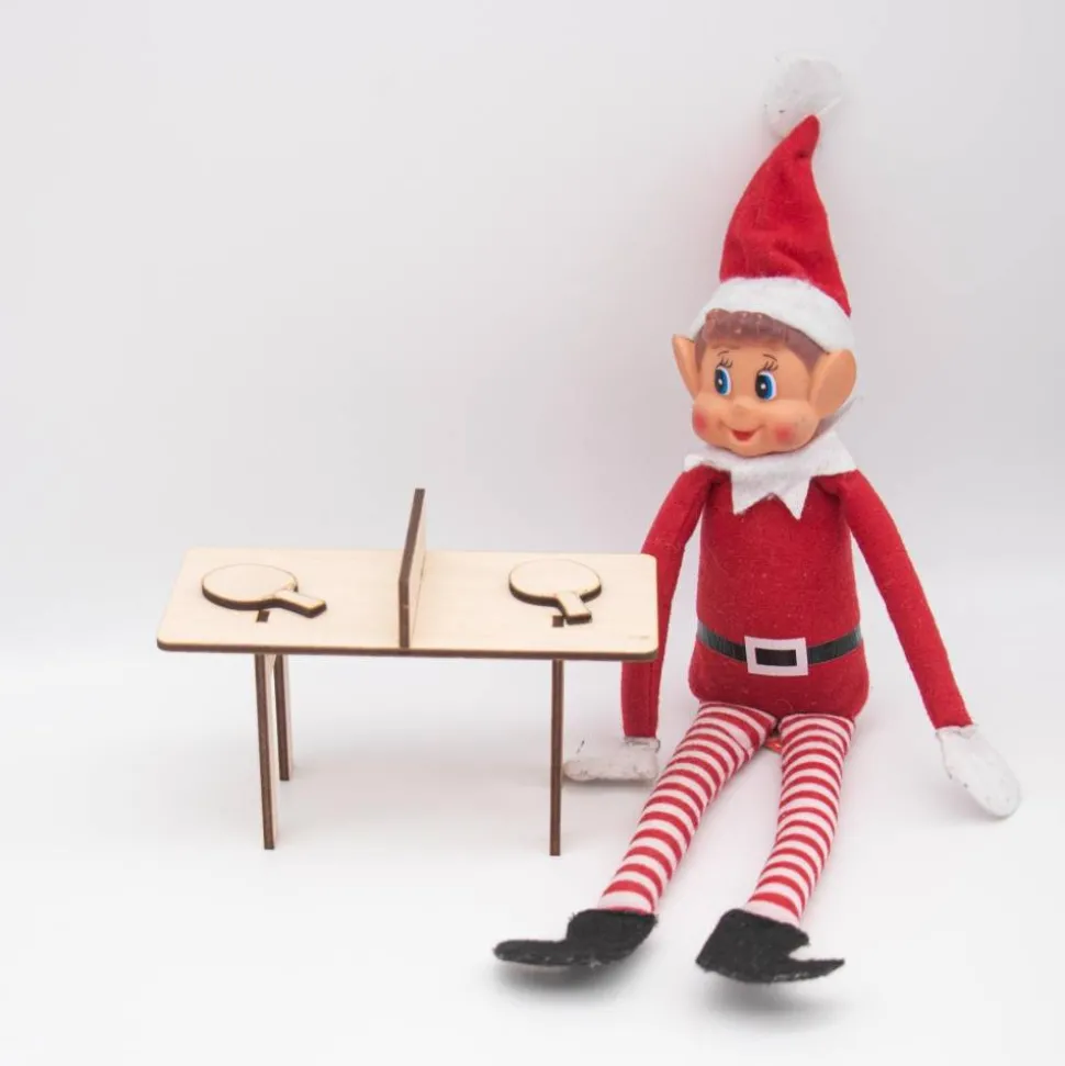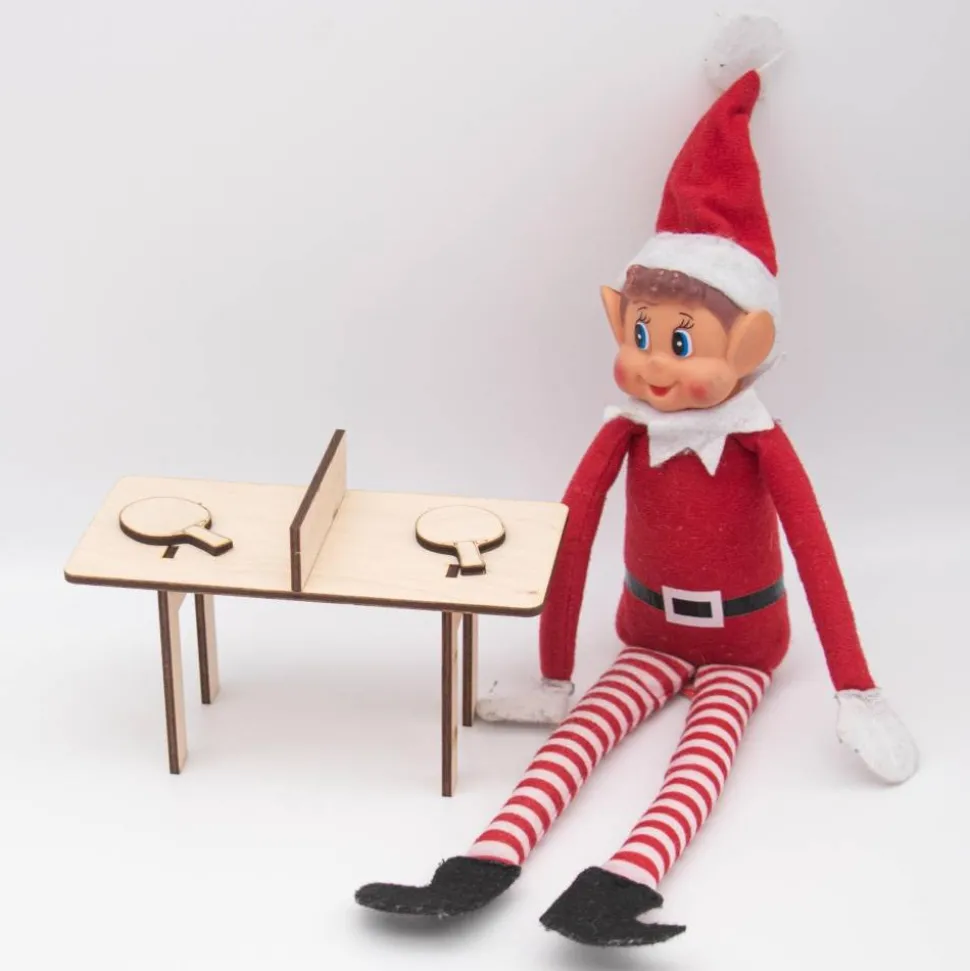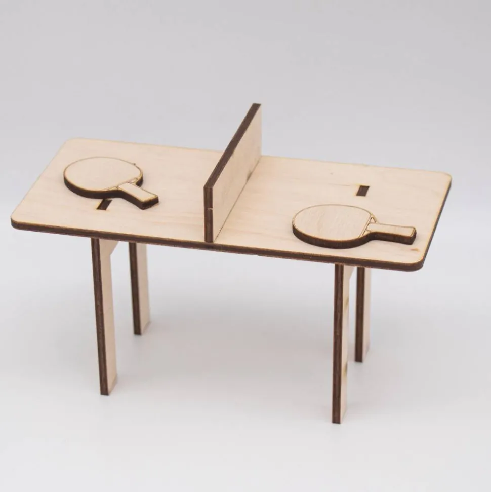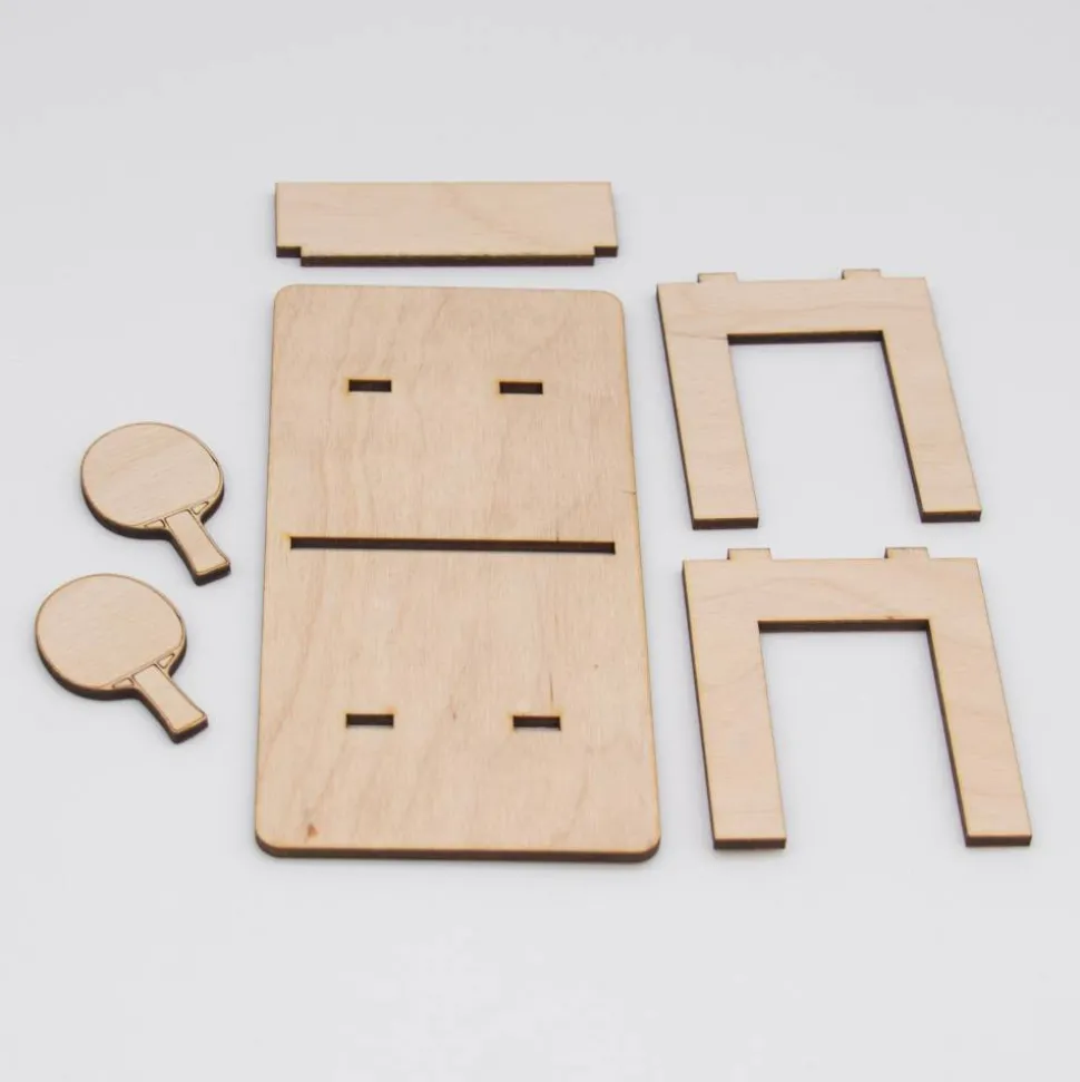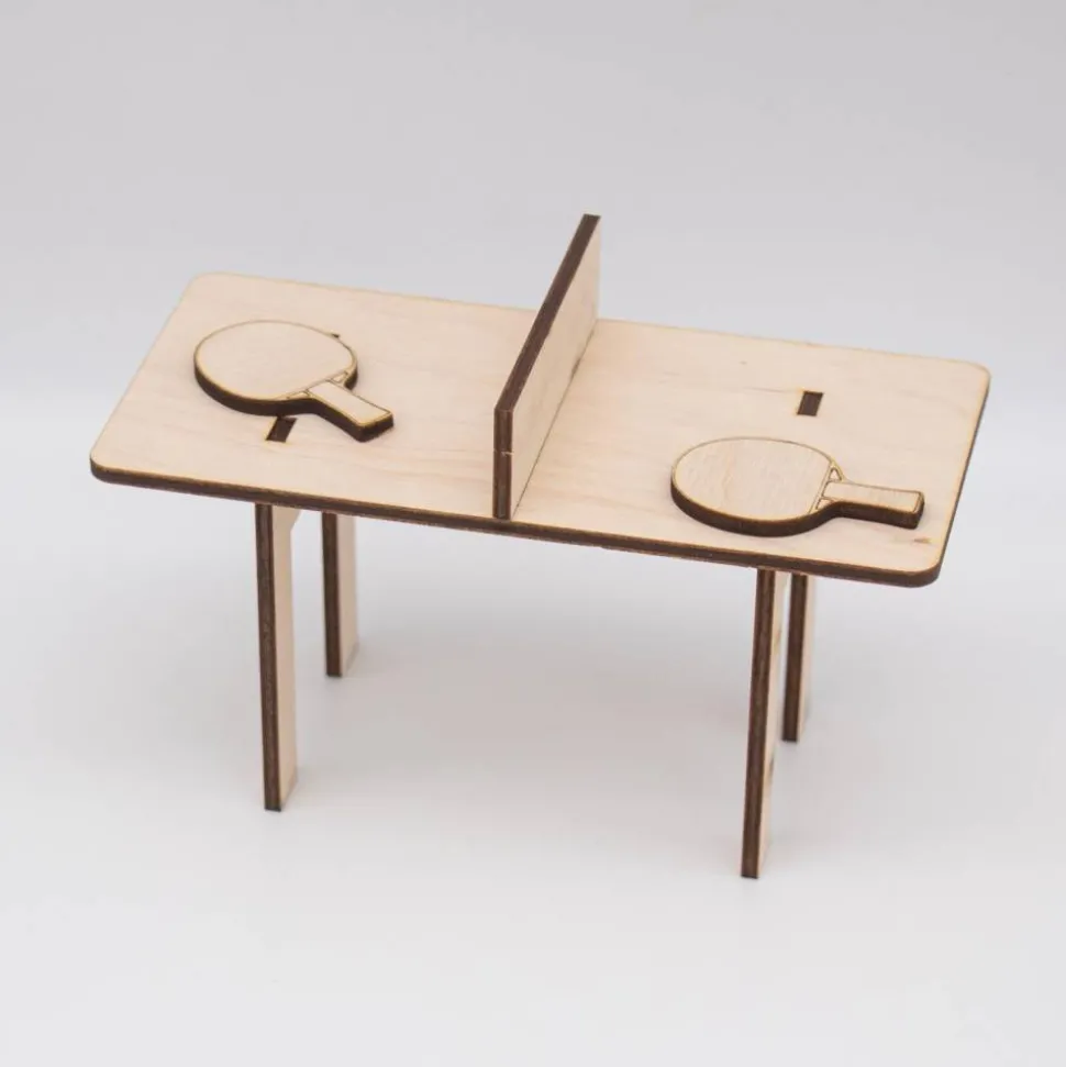 Dieser bezaubernde Mini-Tischtennistisch ist das ideale Accessoire für den Wichtel, der seine Tischtennis-Tricks trainieren möchte! Mit einer Größe von 14 cm Länge, 7,5 cm Breite und 7 cm Höhe passt er perfekt in jede Wichtelwelt. Hergestellt aus hochwertigem 3 mm dickem Birkensperrholz, besteht der Tisch aus vier Teilen, die kinderleicht ineinandergesteckt werden.