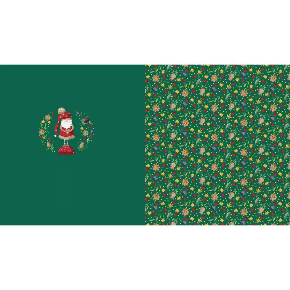 -> Das Haupt-Motiv ist ein wunderbar süßer Weihnachtswichtel. Die Farben sind ROT, WEISS, hellbraun und jeansblau.