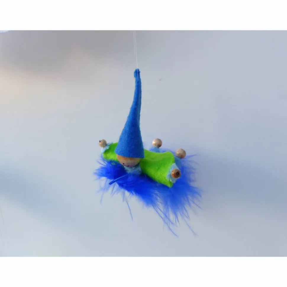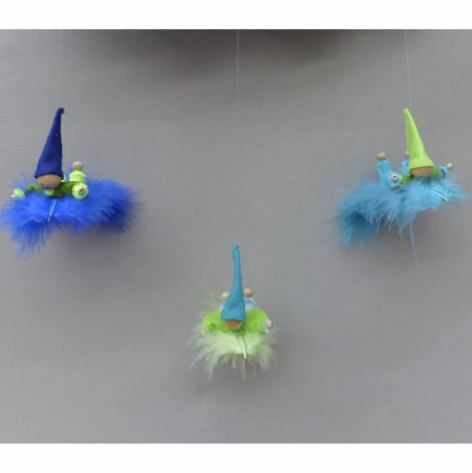 Werden die Wichtel-Zwerge über ein Baby-Bett gehängt, so sehen die Wichtel auch von unten, aus Sicht des Babys oder Kleinkindes, toll aus! Es sind alle Farben des Regenbogens möglich! Die flimmernden Federn regen die Sinne des Babys an. Rottöne können Babies als erstes sehen. Gerne fertige ich Wichtel in Wunschfarben an!