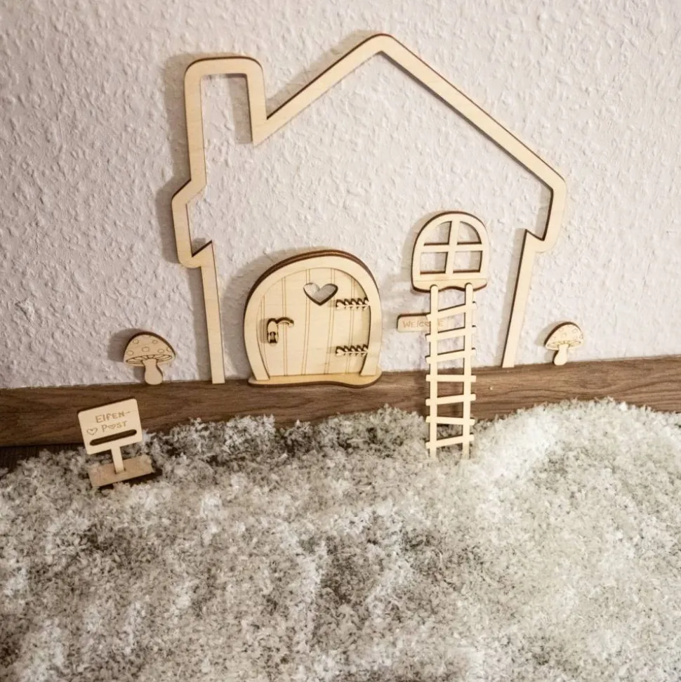 Dieses Wichteltür-Set ist aus hochwertigem 3mm Birkensperrholz gefertigt und mit einem Laser geschnitten. Es besteht aus einer Tür mit einer Höhe von 10 cm, einer Leiter, einem Fenster, zwei Pilzen und einem Briefkasten. Die Tür ist mit einem kleinen Fenster ausgestattet, durch das man einen Blick in das Wichtelhaus erhaschen kann. Die Leiter führt zum Fenster hinauf, wo der Wichtel hineinsteigen kann. Die beiden Pilze sorgen für eine gemütliche Atmosphäre im Wichtelhaus. Der Briefkasten ist der perfekte Ort, um dem Wichtel Nachrichten zu hinterlassen.