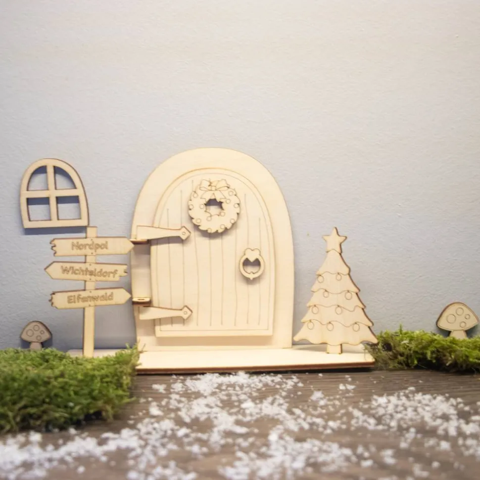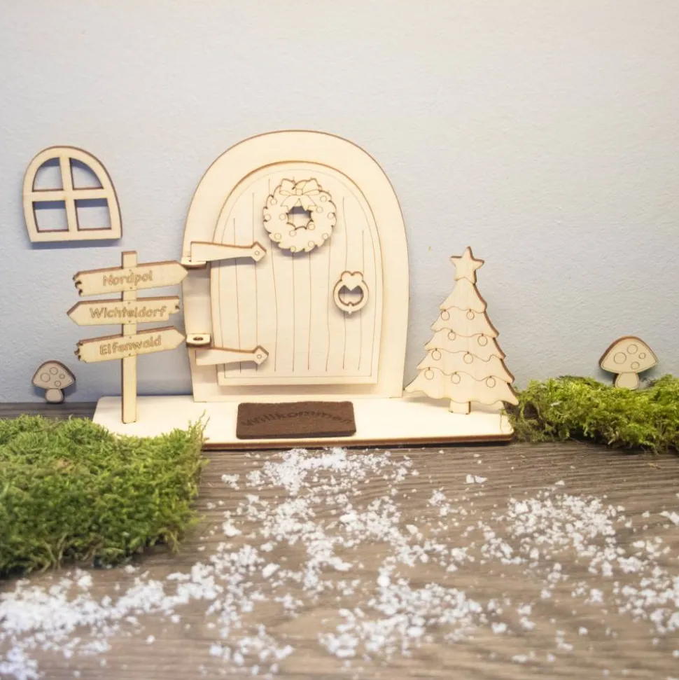 Durch die Holzmaserung kann jede Tür etwas unterschiedlich sein. Versendet werden die Wichteltüren als Deutsche Post Großbrief mit Sendungsverfolgung.
