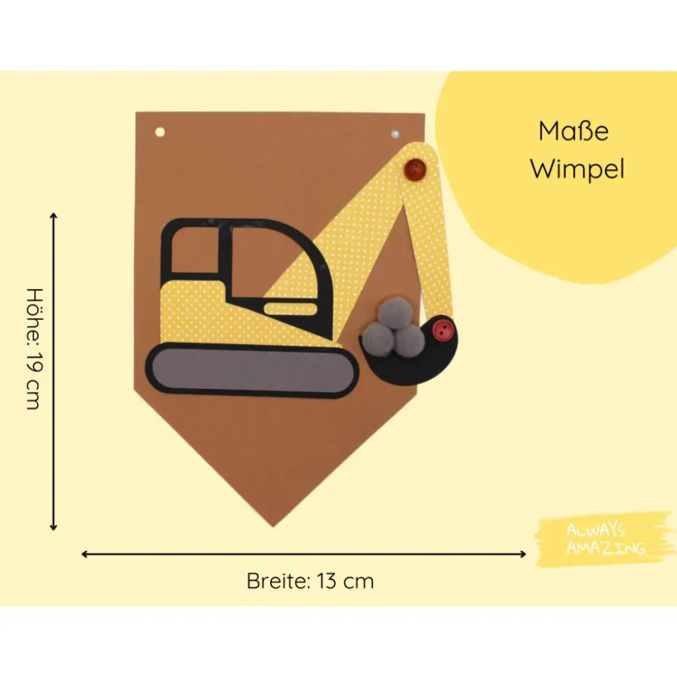 Das liebevoll gestaltete DIY-Set enthält alles, was du brauchst, um eine individuelle Girlande mit Bagger-Motiven selbst zu basteln – ideal für kleine Baumeister und begeisterte Baustellen-Fans.