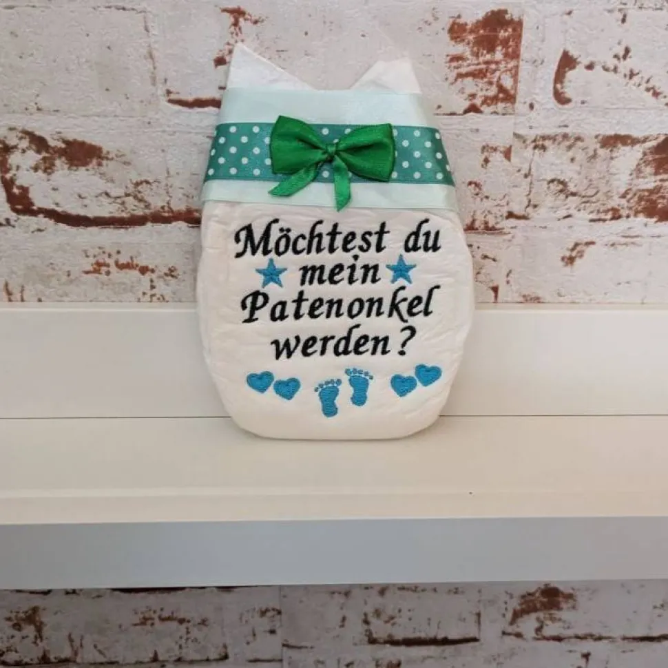 Dieses Produkt steht in keiner Verbindung mit Procter & Gamble. Procter & Gamble übernimmt keine Haftung für die bestickten Windeln.