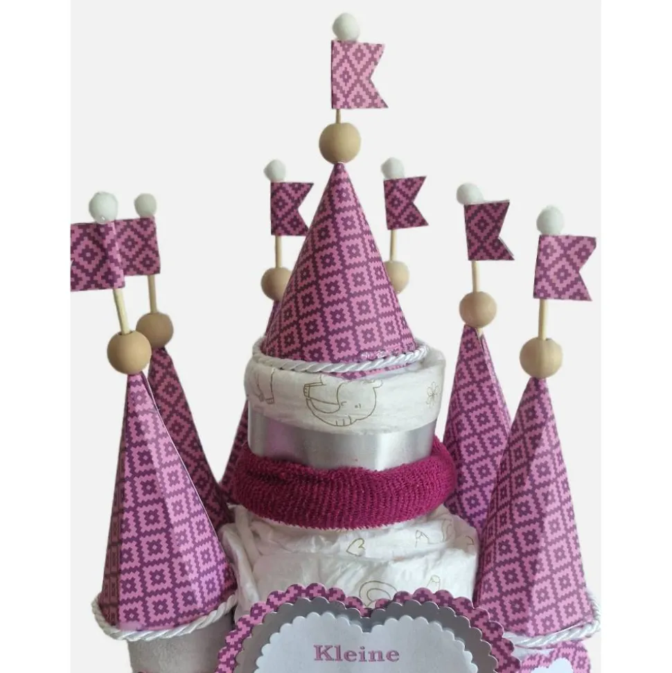 Überrasche werdende Eltern mit einer einzigartigen Windeltorte Mädchen als Windelschloss in dunklem Pink! Diese liebevoll gestaltete Windeltorte wird mit dem Namen des Babys personalisiert und macht kleine Mädchen zu echten Prinzessinnen. Perfekt als Geschenk zur Babyparty oder Geburt, überzeugt die Windeltorte durch höchste Qualität und praktische Babyartikel.