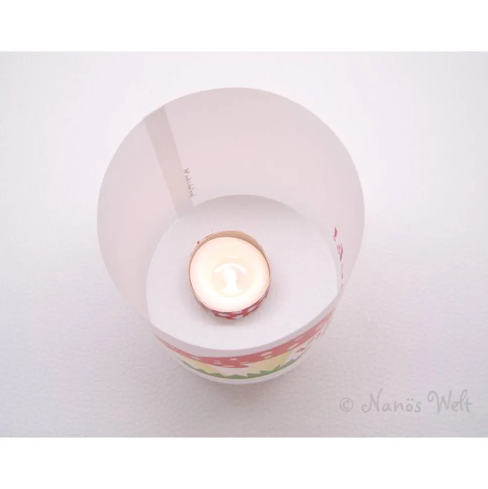 Zusammenheften, Teelicht oder LED-Licht hinein und viel Freude mit Eurem „Lyrical Light“!