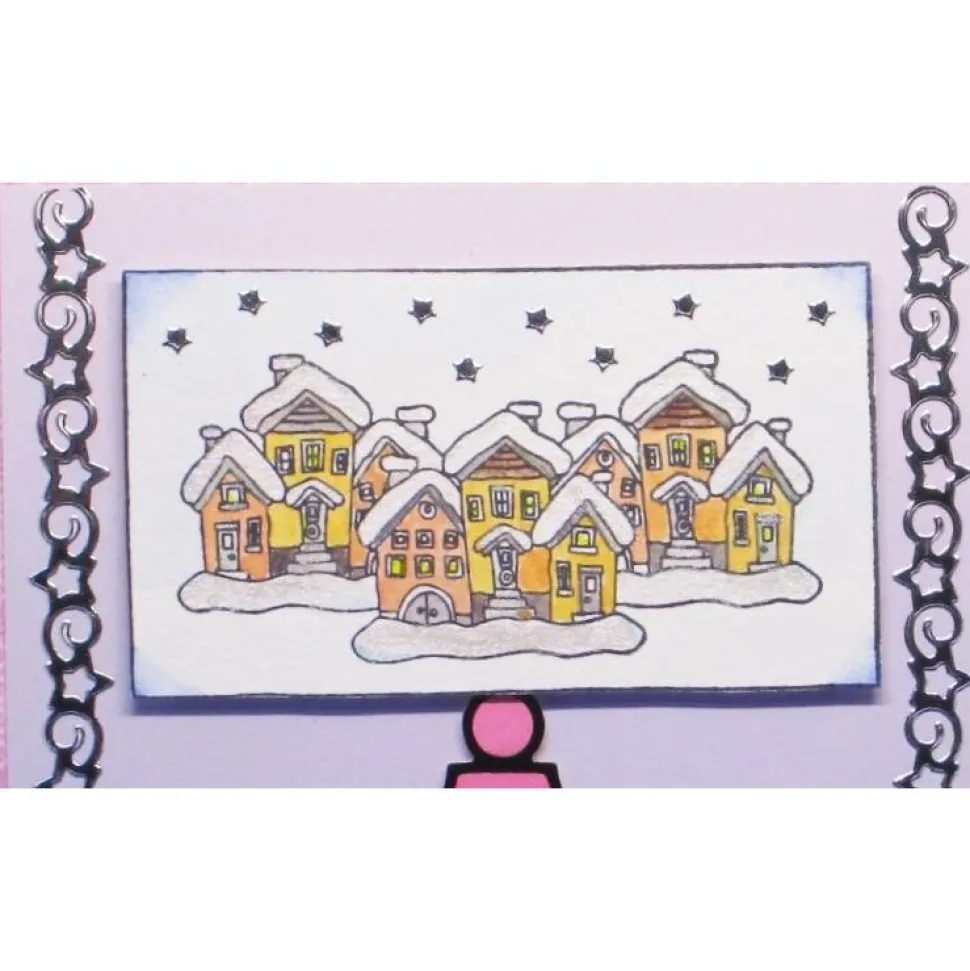 Entdecke eine einzigartige Winterkarte oder Weihnachtskarte in zarten Rosatönen, liebevoll gestaltet mit einer verschneiten Dorfszene und einer detailreichen Mandala Kugel. Die Karte ist etwa 15 x 15 cm groß und besteht aus hochwertigem 300 g/m² Papier, was ihr eine besonders edle Haptik verleiht.