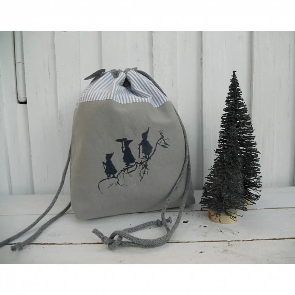 mit 2 grauen Baumwollkordeln kann der Beutel geschlossen werden