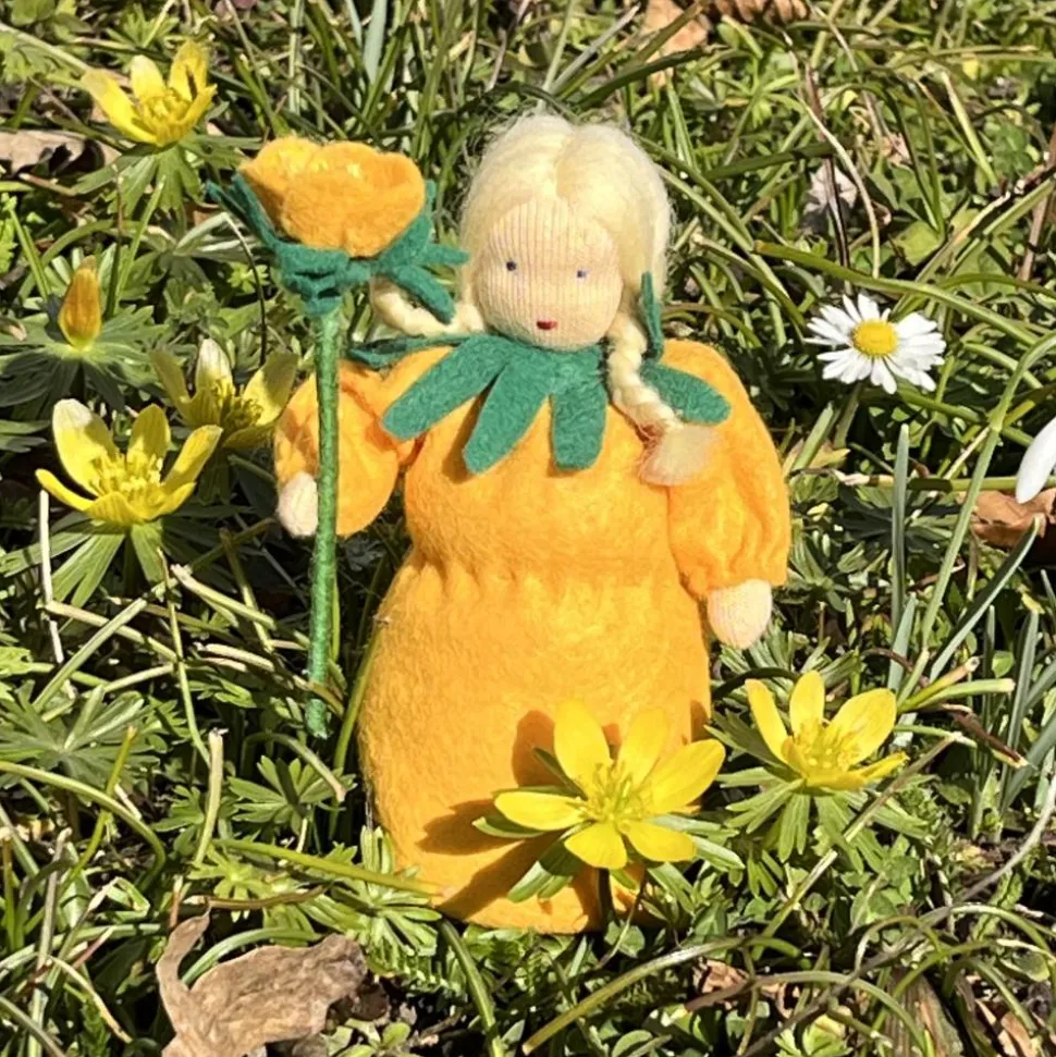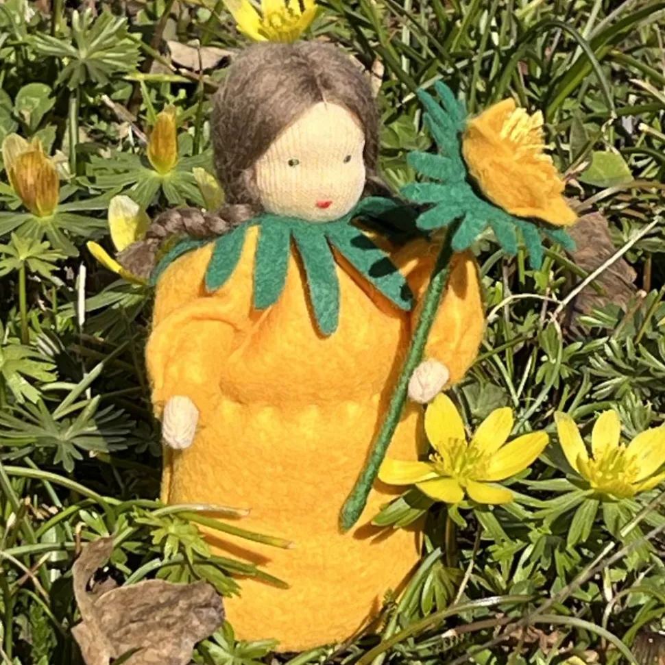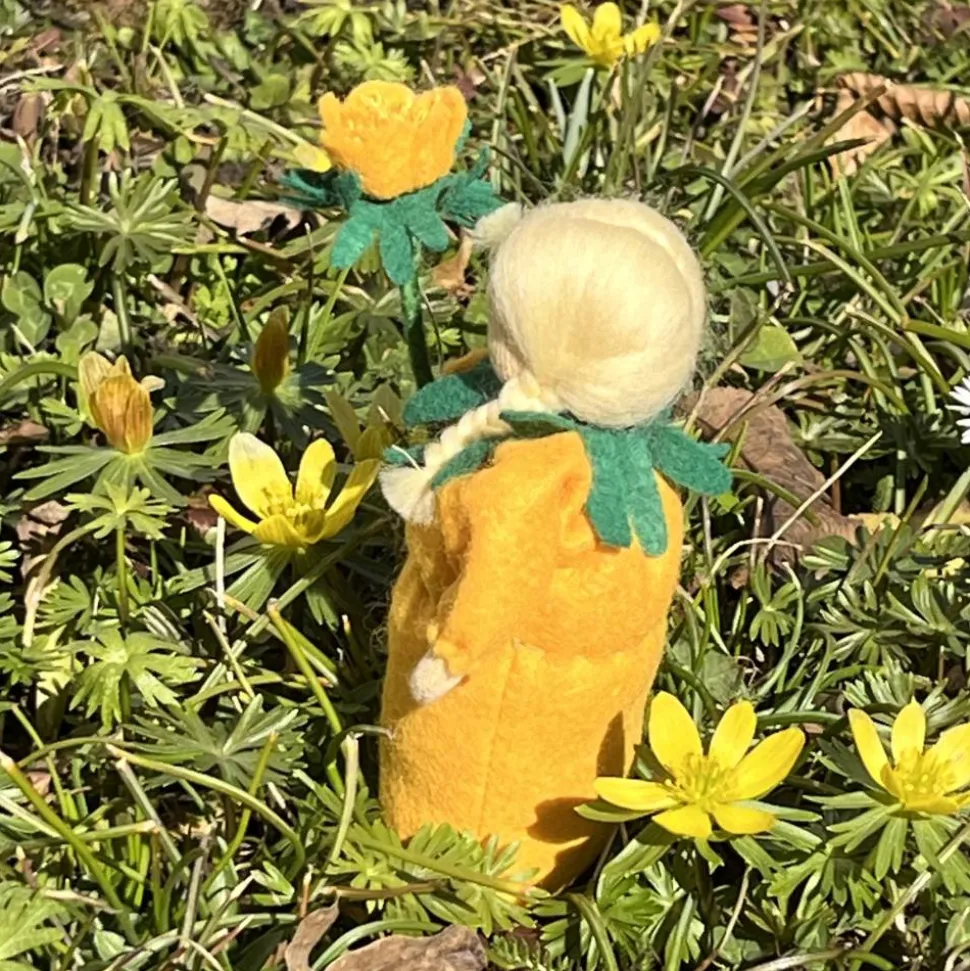 Das Püppchen ist unten geschlossen und für einen guten Stand unten mit feinem Dekokies und der Rest mit reiner, süddeutscher Merinowolle gefüllt.