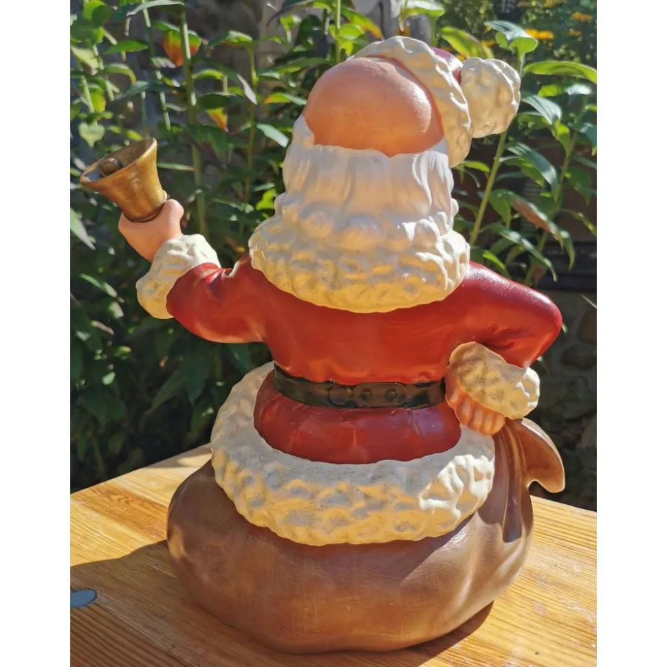 Der Weihnachtsmann ist aus Keramik ca 27cm hoch und 22cm breit. Bemalt wurde er sorgfältig mit Acrylfarben und mit Lack zweimal wetterfest versiegelt. Er kann draussen stehen, sollte aber vor Frost geschützt werden.