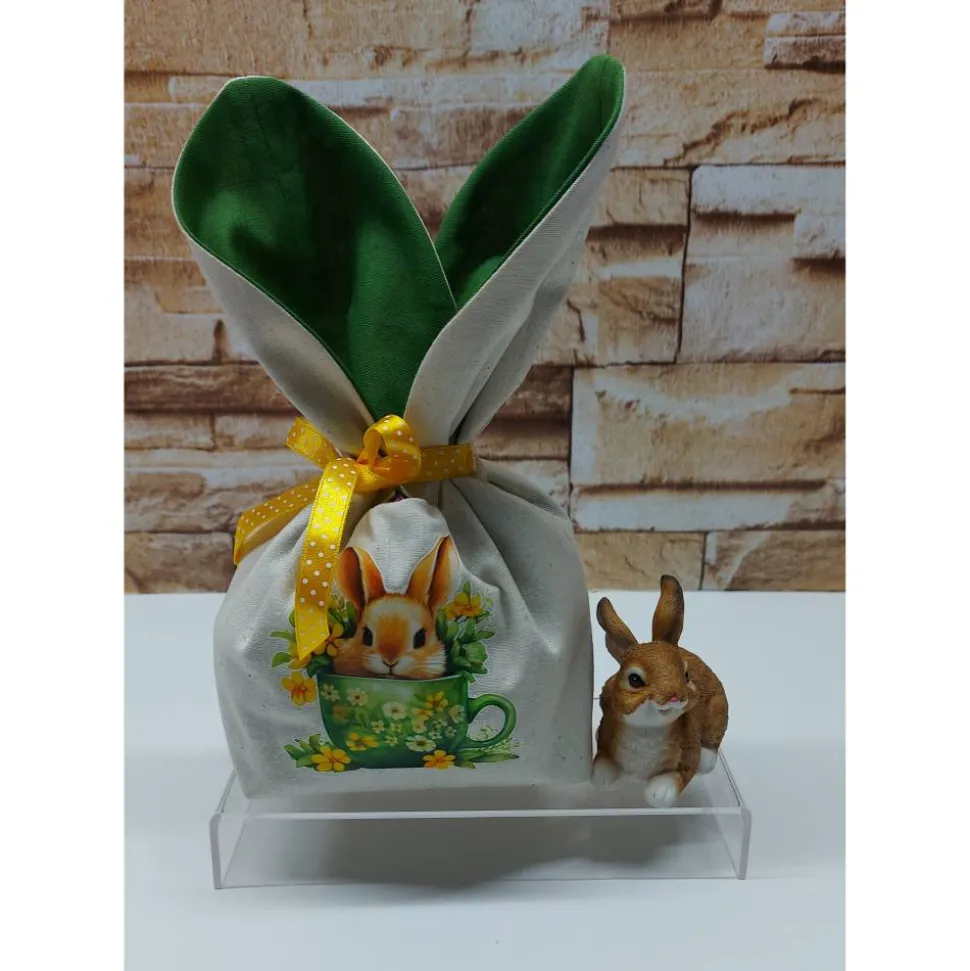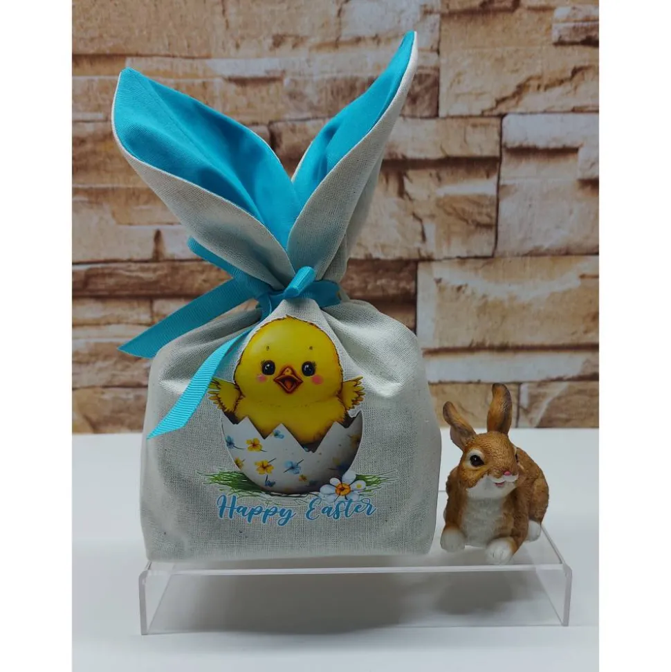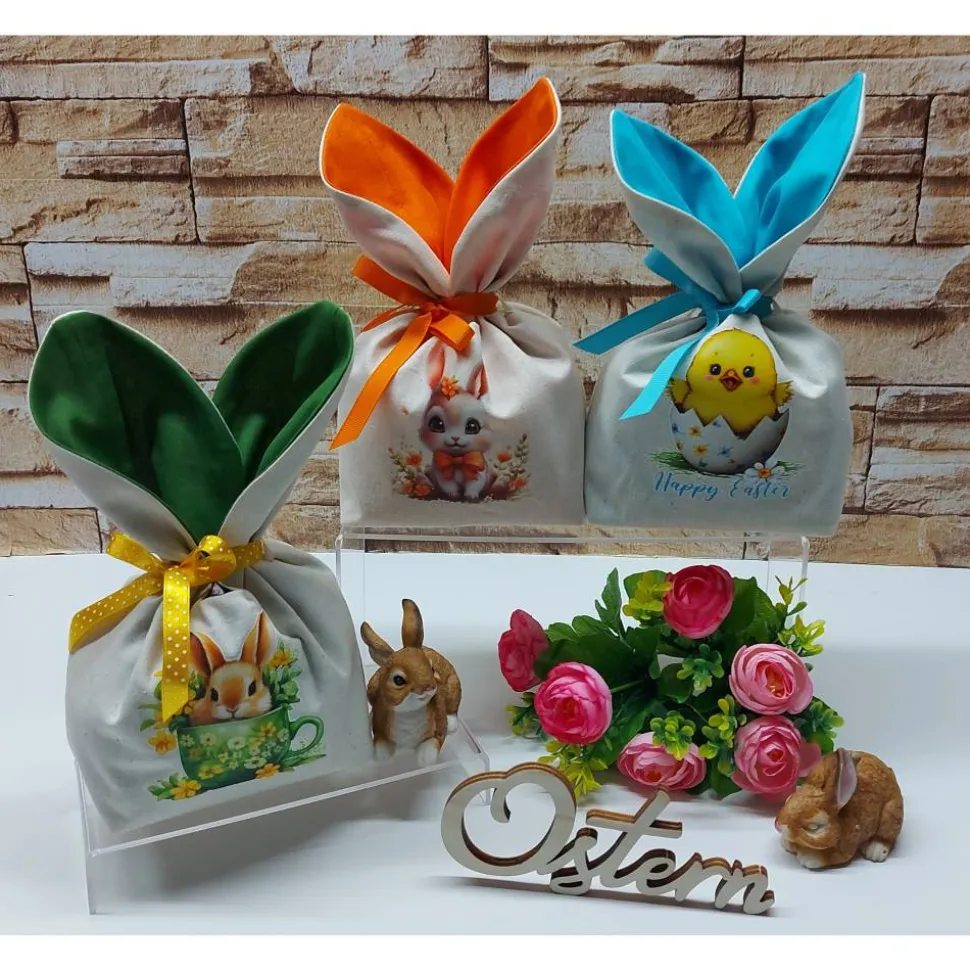 Die Ostersäckchen bestehen aus reinen Baumwollstoffen und sind auf der Vorderseite mit einem hübschen Osterbügelbild versehen.