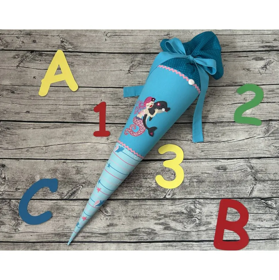 Die Schultüte ist 70cm groß, Plus der Stoff zum verschließen und genäht aus 100% Baumwolle.