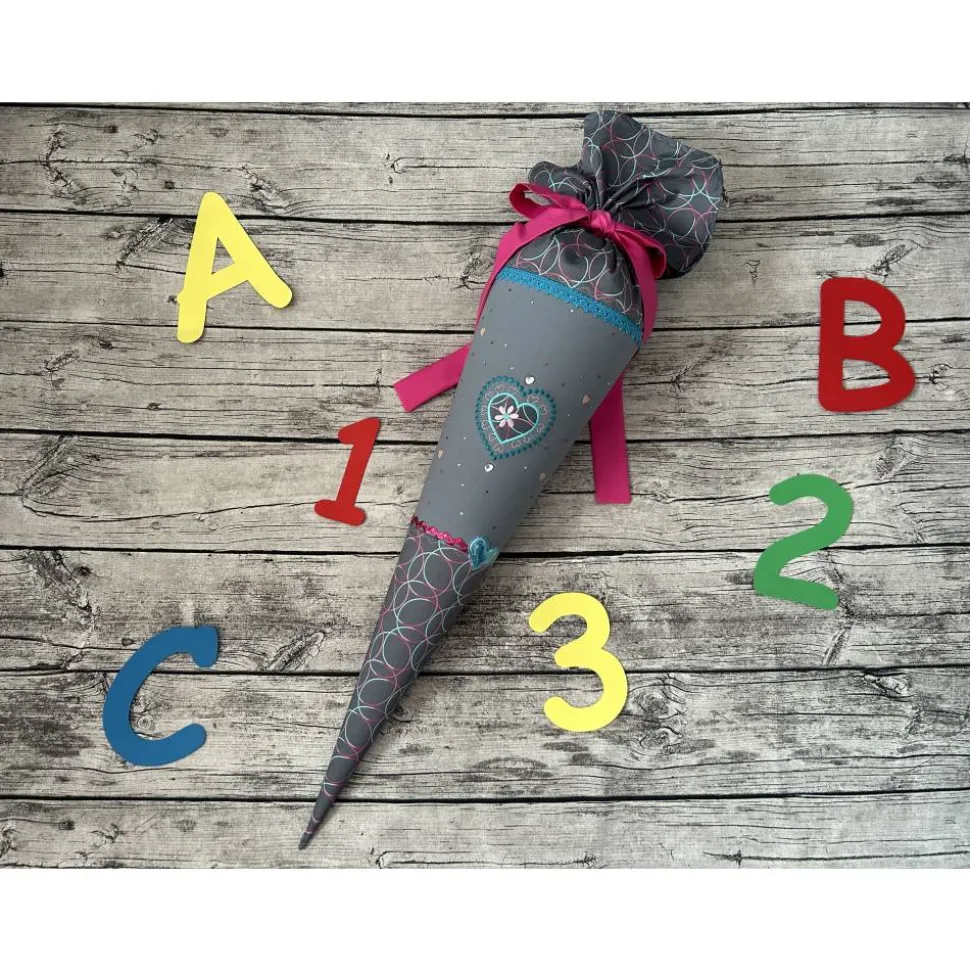 Die Schultüte ist 70cm groß, Plus der Stoff zum verschließen und genäht aus 98% Baumwolle 2%Elastan.