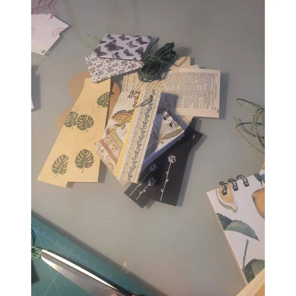 gefüllt mit je 2 Miniblöcken und einem Mini – Vokabelblock mit Ring, Tags ( immer mit einem Bändchen zum Anhängen versehen ), Mini – Umschlägen, Tütchen … Stückchen Geschenkband …