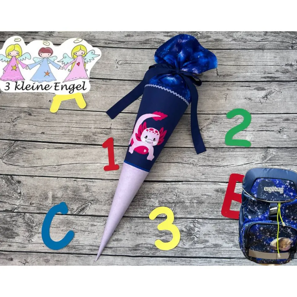 Hier habe ich eine ganz besondere Schultüte aus Stoff für euch. Genäht aus hochwertigen tollen Baumwoll-Stoffe in Blau & Flieder.