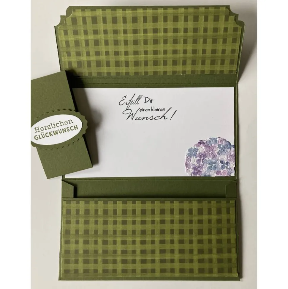 Der Umschlag ist ideal um ein Geldgeschenk oder auch einen Gutschein liebevoll zu verpacken, gleichzeitig ist auf der kleinen Karte Platz für persönliche Zeilen.
