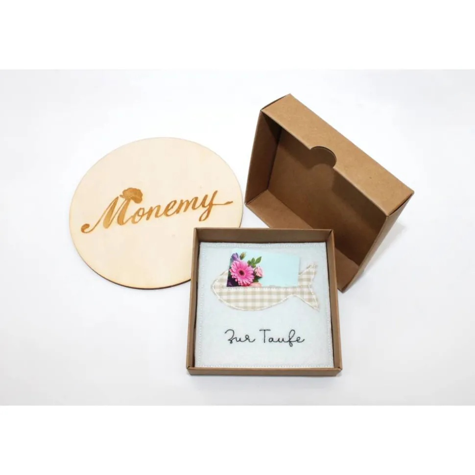 Im Inneren des Fisches befindet sich ein kleines Fach, das Platz für einen Geldschein oder eine Gutscheinkarte bietet – ein liebevoller Rahmen für ein symbolisches Geschenk.