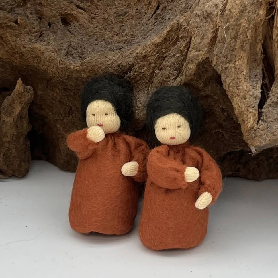 Das Püppchen ist unten geschlossen und für einen guten Stand unten mit feinem Dekokies und der Rest mit reiner Schurwolle gefüllt.