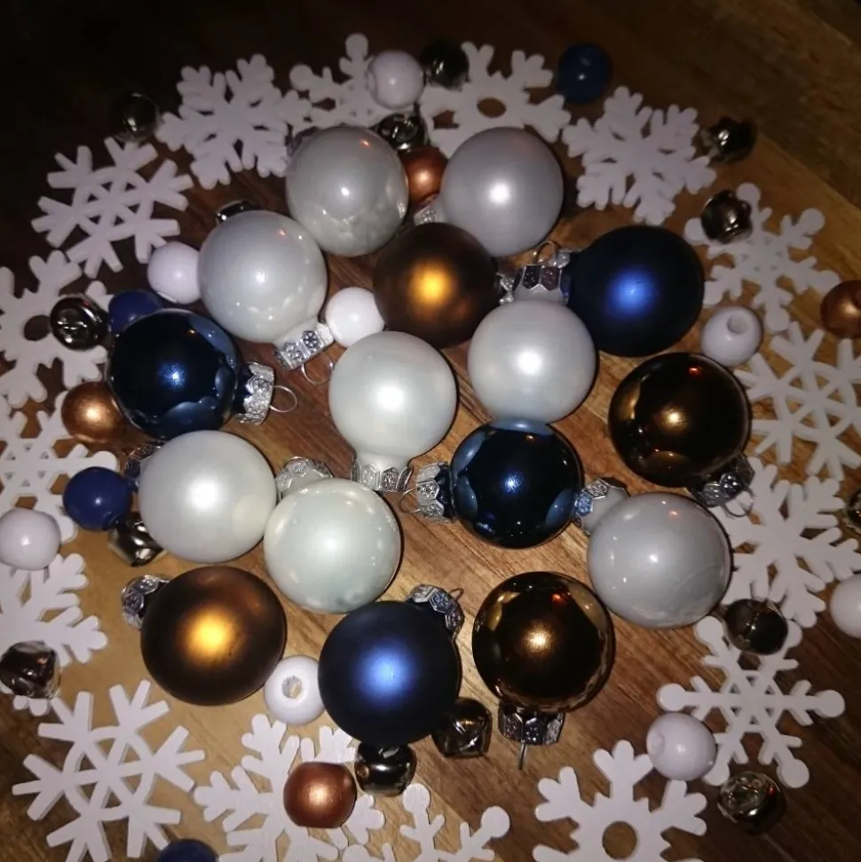 16 Weihnachtskugeln, Glas, 8 x rauchweiß + 4 x nachtblau + 4 x kupferbraun, D 2,5 cm