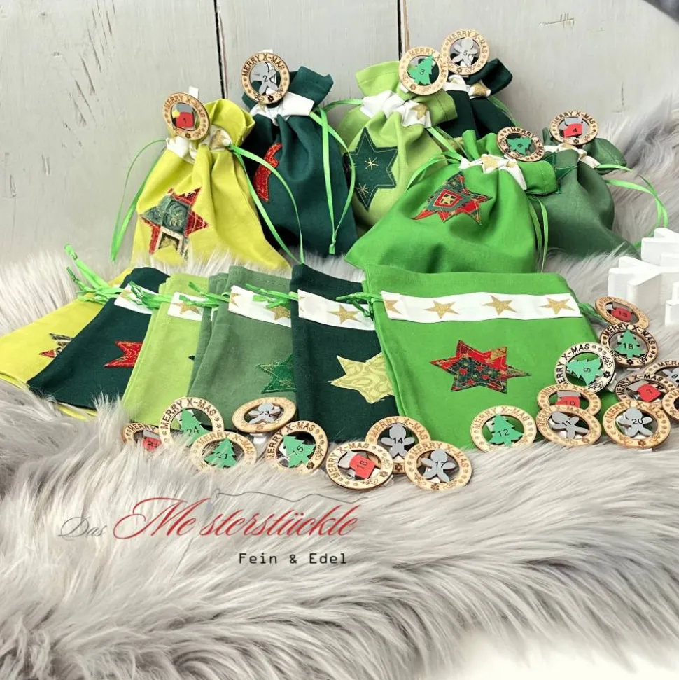 Unsere Adventskalendersäckchen gibt es in verschiedenen Ausführungen und werden komplett in Deutschland hergestellt. Sie sind aufwendig, liebevoll und hochwertig verarbeitet und bei guter Pflege jedes Jahr wieder zu verwenden. Dies ist nachhaltig und trägt zum Schutz der Umwelt bei. Handgefertigte Adventskalendersäckchen können ganz individuell befüllt werden.