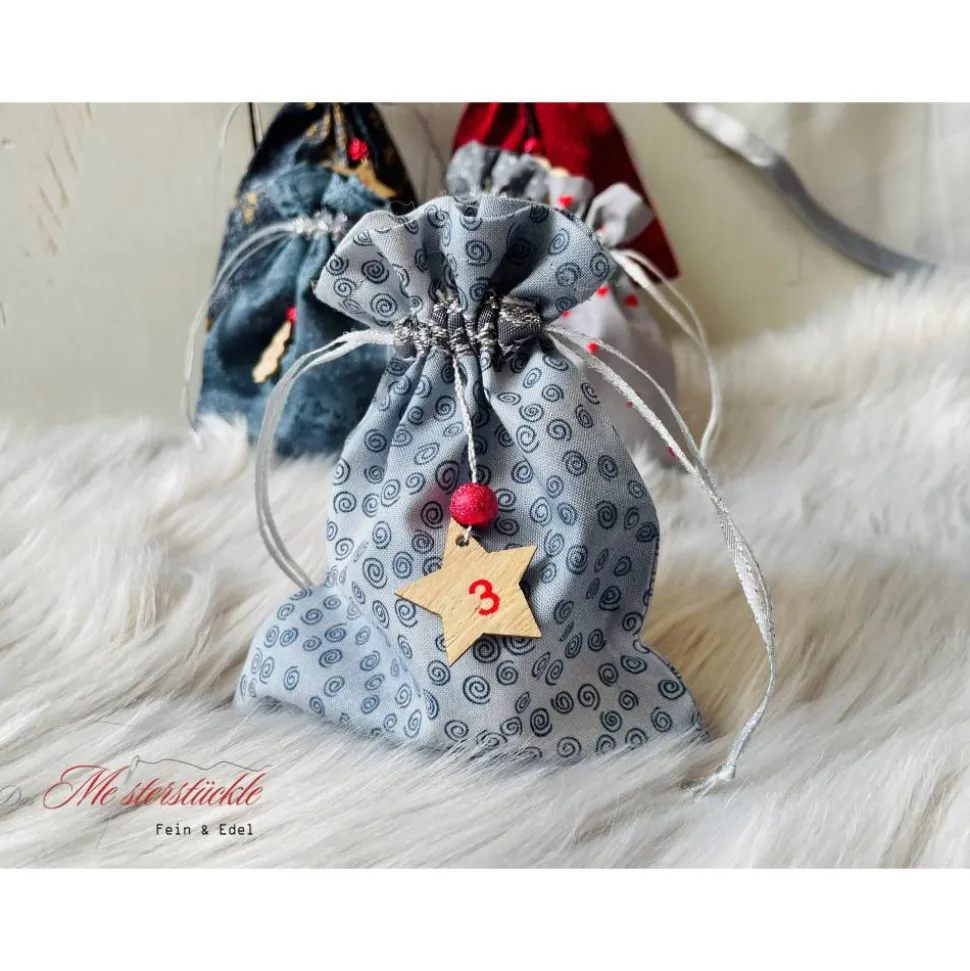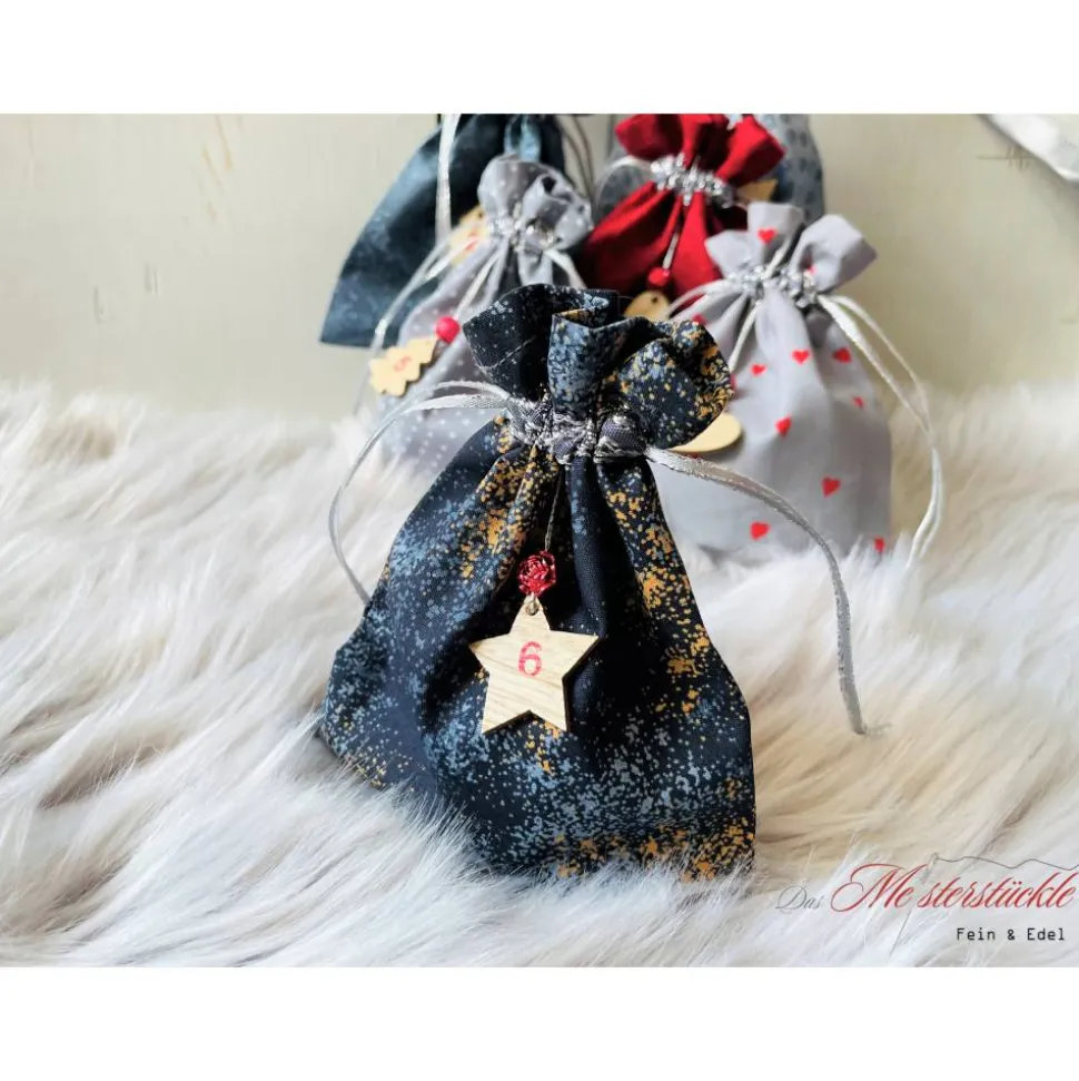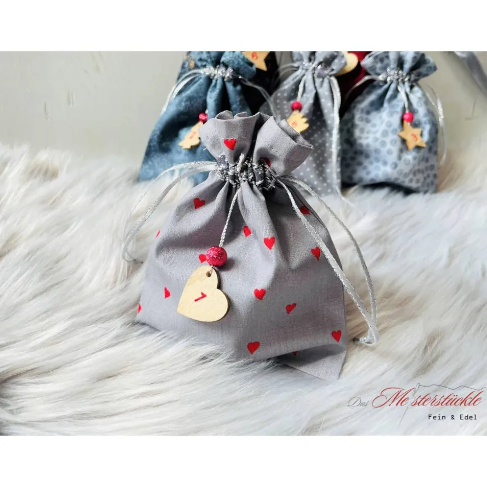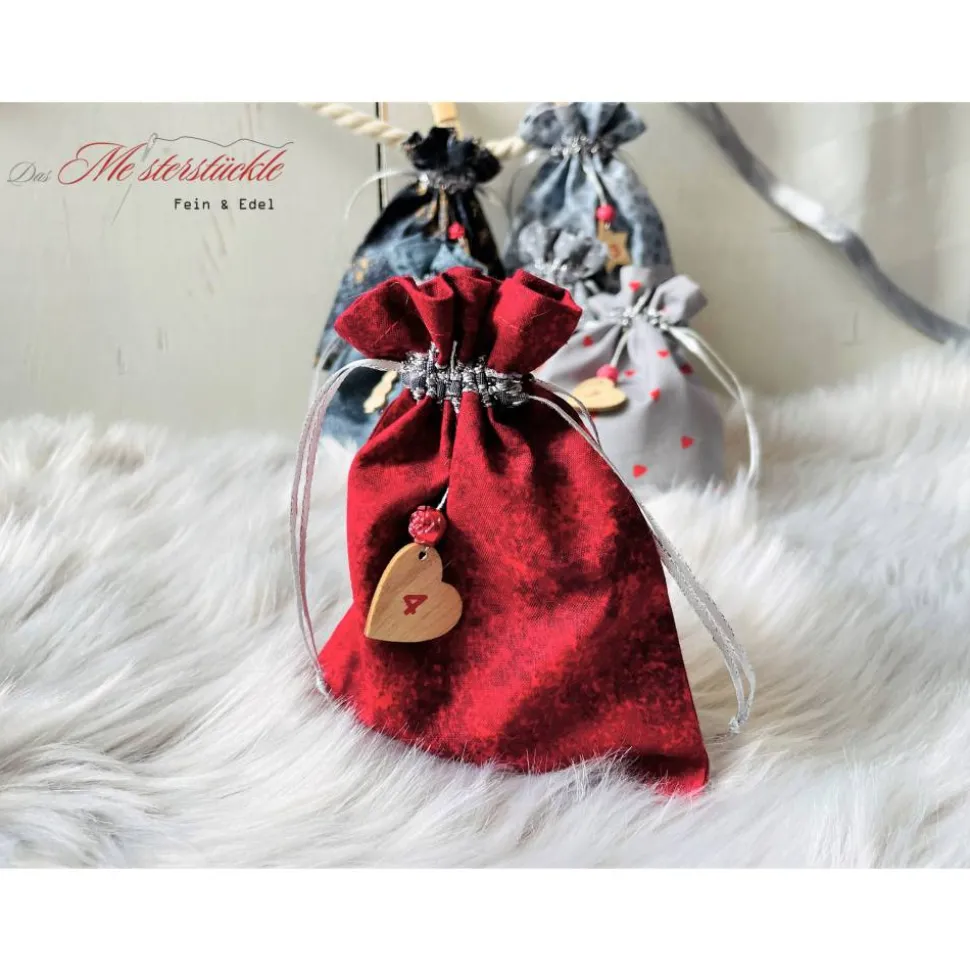 Die Säckchen sind in aufwendiger Handarbeit gefertigt. Alle Nähte sind versäubert und der obere Rand