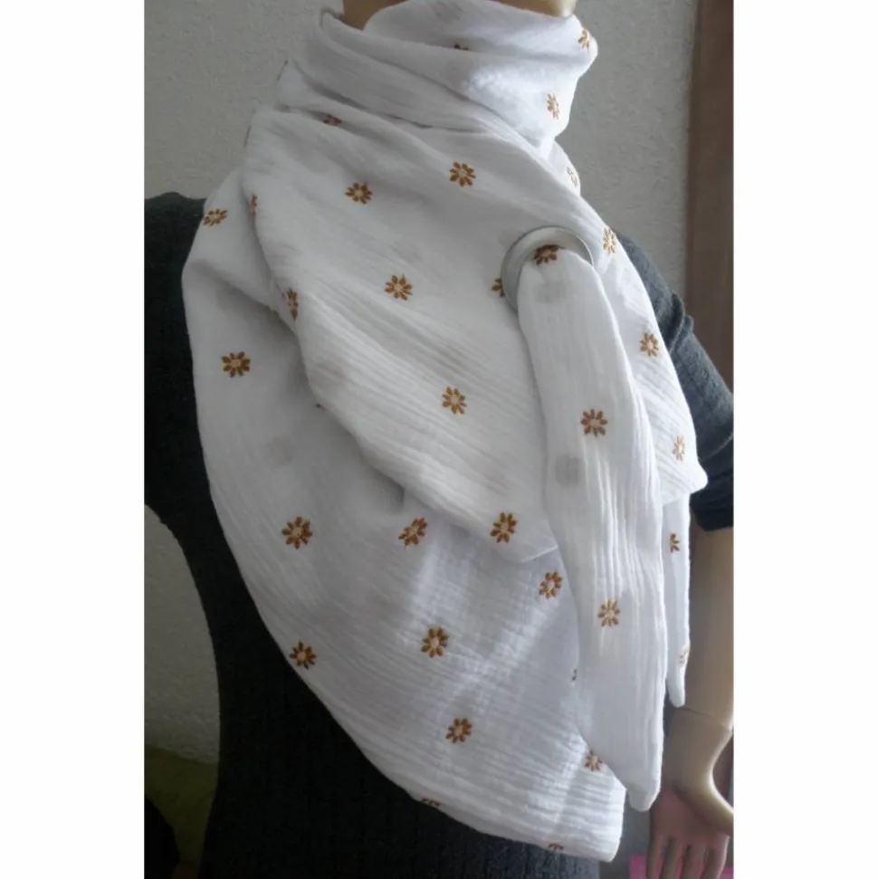 Material: Musseline 100% Baumwolle, Double gauze Weiß mit kleinen Blümchen, Öko – Tex Standard 100 Class I.