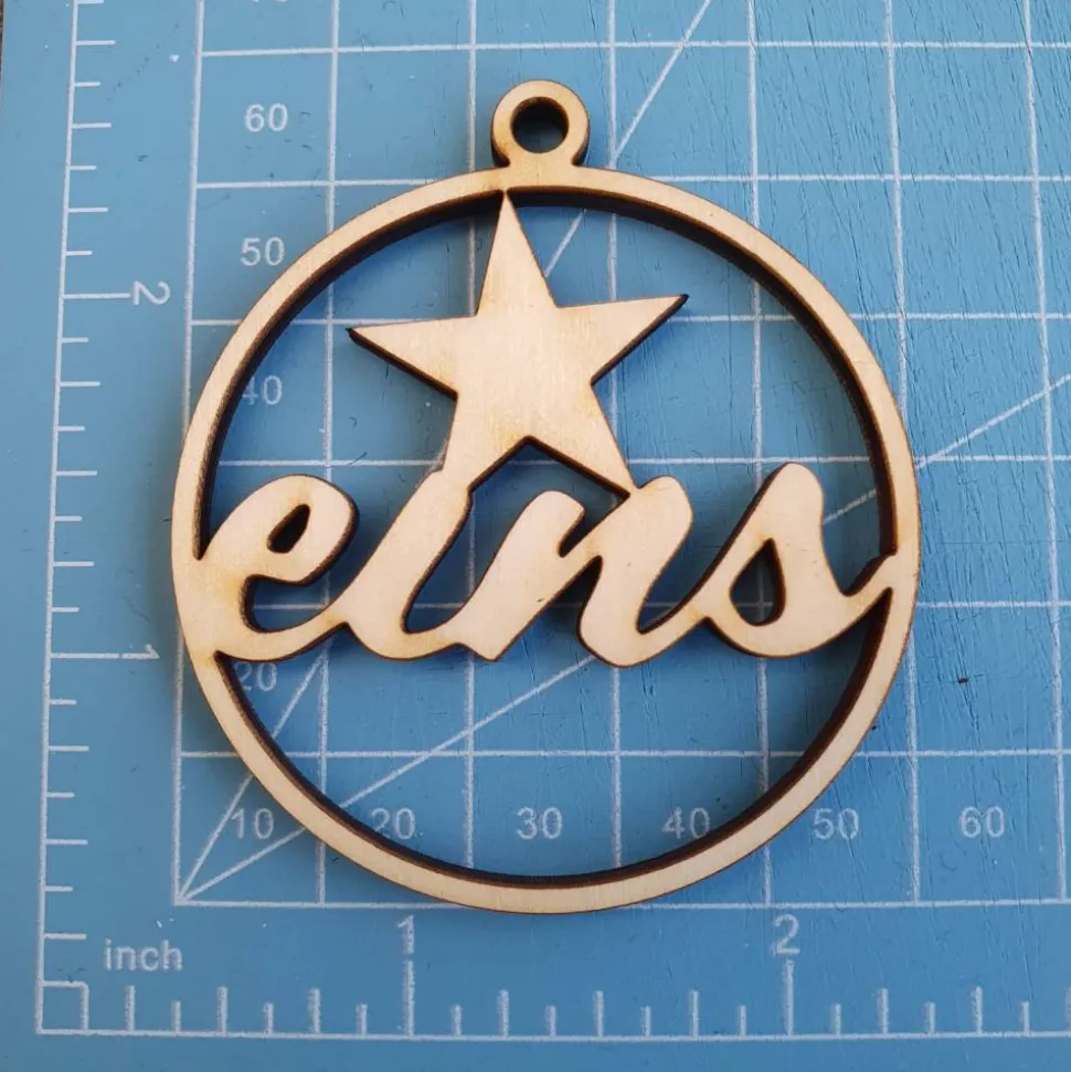 Die Anhänger isnd aus 4mm dickem Pappel-Sperrholz, der Ring hat einen Durchmesser von 5cm, die Öse fürs Bindeband ist 5mm hoch.