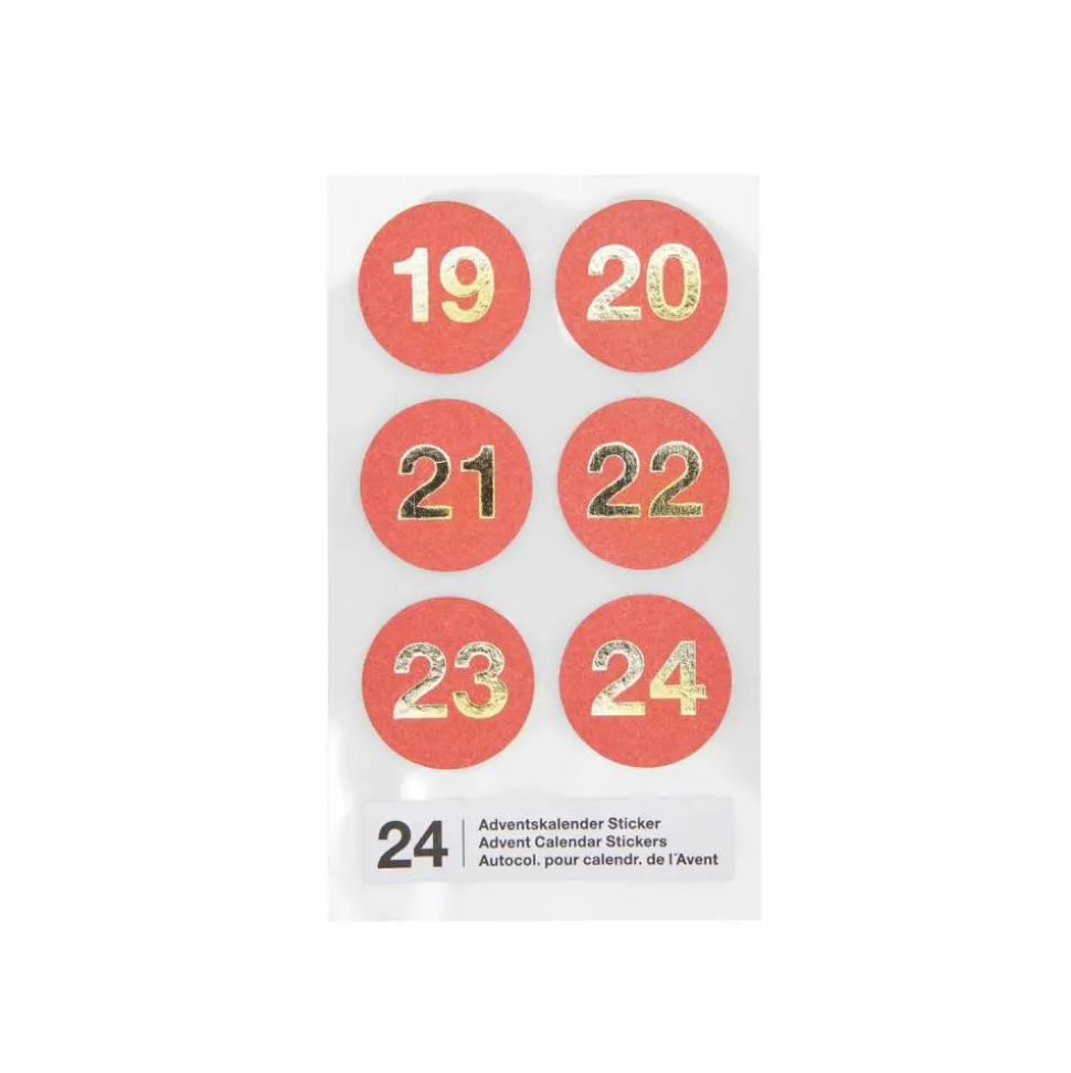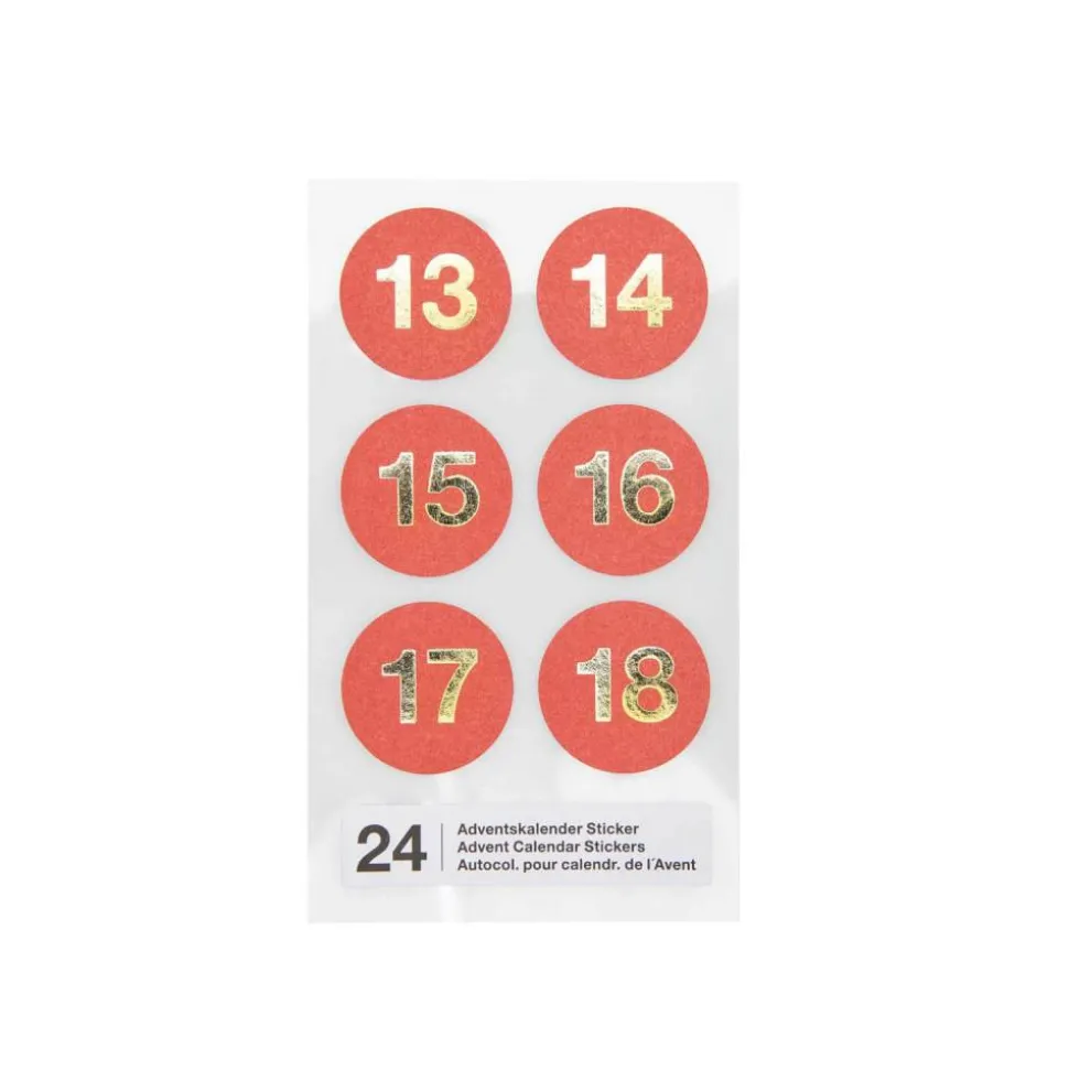 Die roten Zahlensticker sind ca. 28 mm groß. Die Sticker lassen sich direkt auf Papier oder Pappe kleben. Die glänzenden Adventskalenderzahlen sind mit Hotfoil aufgedruckt.