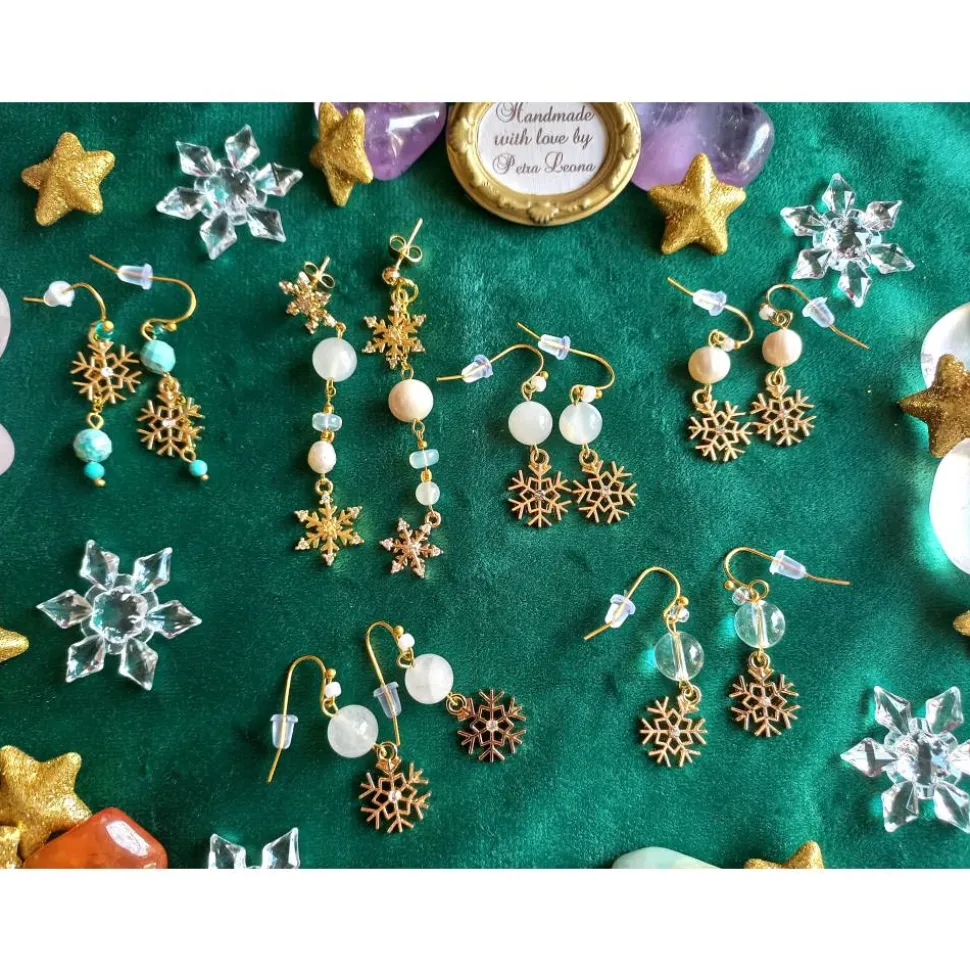 Leider gelingt es mir nicht wirklich, die tatsächliche Schönheit der Edelsteine und der Schneeflocken-Anhänger auf den Fotos wieder zu geben. Lineal und andere Edelsteine sowie etwaige Dekorationsgegenstände dienen nur dem Größen- und Farbvergleich und sind nicht Bestandteil des Angebots. Auf Foto 7 ist einer der Ohrringe von der Vorder- und der zweite von der Rückseite zu sehen, 5 weitere Ohrring-Paare dieser Serie im direkten Vergleich auf Foto 8 und auf Foto 9 ausgewählte silber-farbene Ohrring-Paare dieser Serie (jeweils in separaten Angeboten).