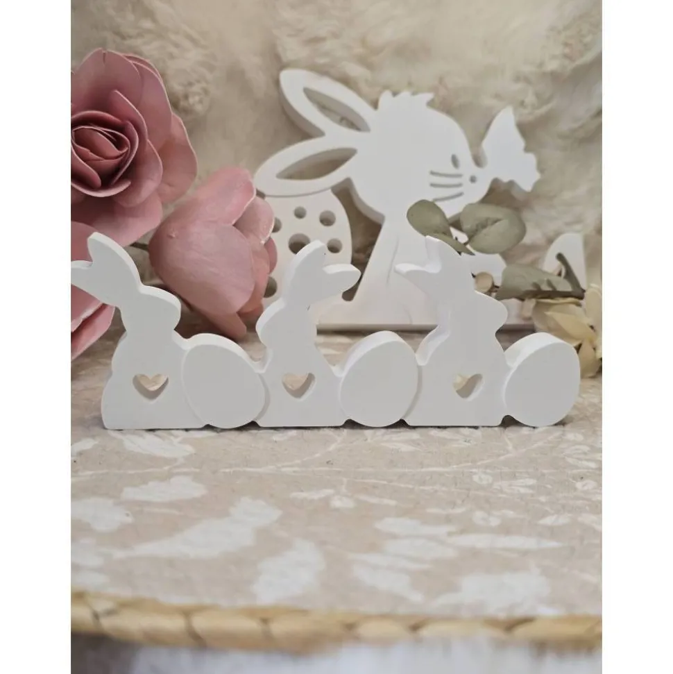Die drei niedlichen Osterhäschen sind aneinandergereiht und mit Ostereiern verziert. Mit 17 cm Länge und 6 cm Höhe passen sie perfekt als dezente Ergänzung oder als eigenständige Frühlingsdeko in dein Zuhause.