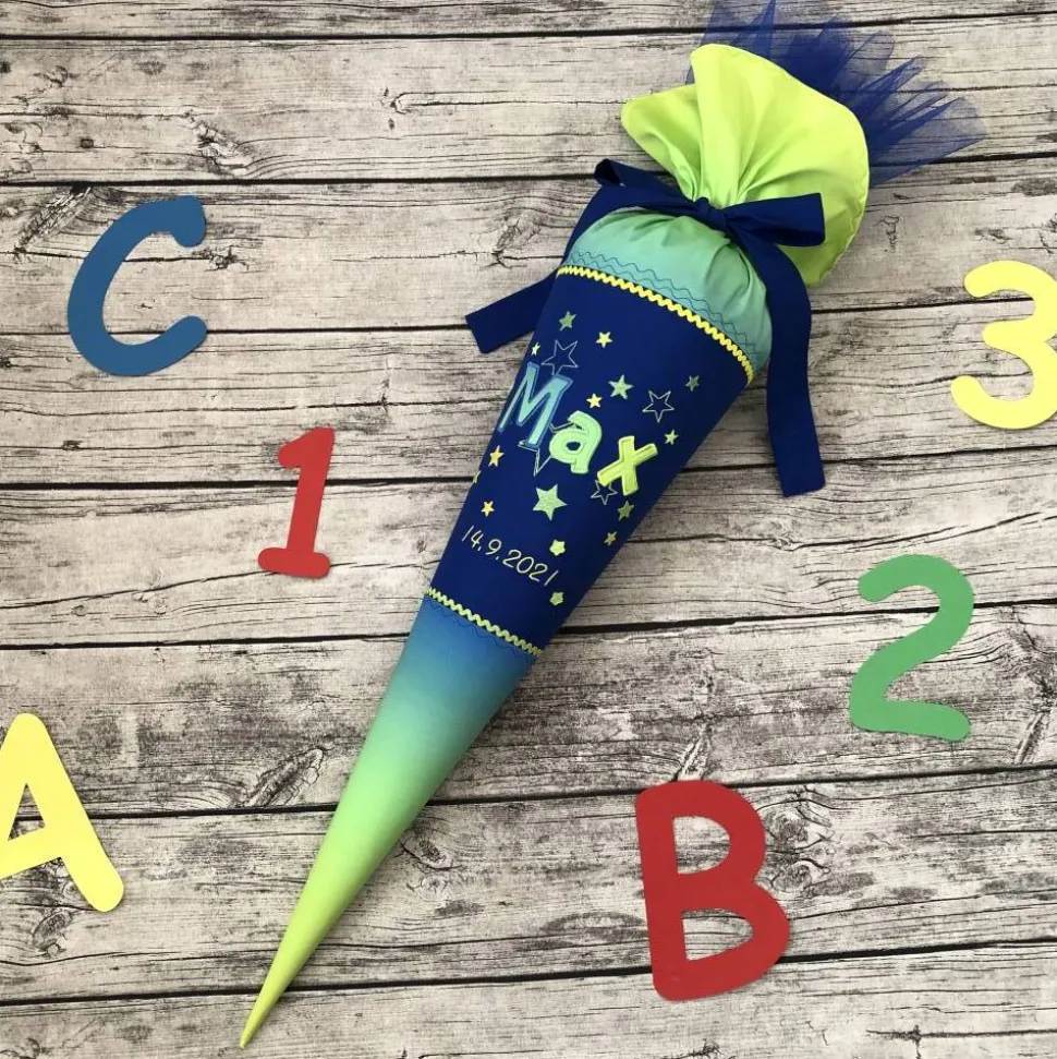 Die Schultüte ist 70cm groß, Plus der Stoff zum verschließen und genäht aus 100% Baumwolle. Der Papprohling zur Stabilisierung ist natürlich im Lieferumfang enthalten.