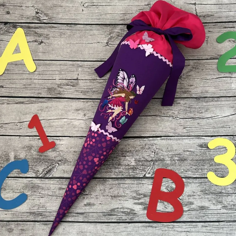 Die Schultüte ist 70cm groß, Plus der Stoff zum verschließen und genäht aus 98% Baumwolle 2%Elastan.