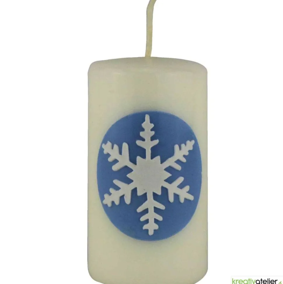 Der zarte Eiskristall, liebevoll von Hand auf die Oberfläche der Kerze aufgetragen, steht im Mittelpunkt des Designs. Er ruht auf einem Hintergrund, der an den unendlichen, hellblauen Winterhimmel erinnert, und bringt die Pracht einer verschneiten Winterlandschaft in Ihre vier Wände.