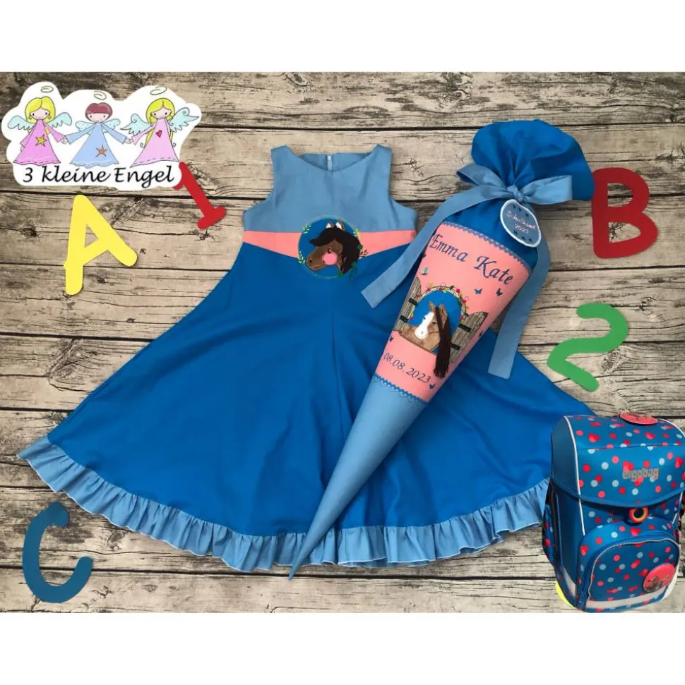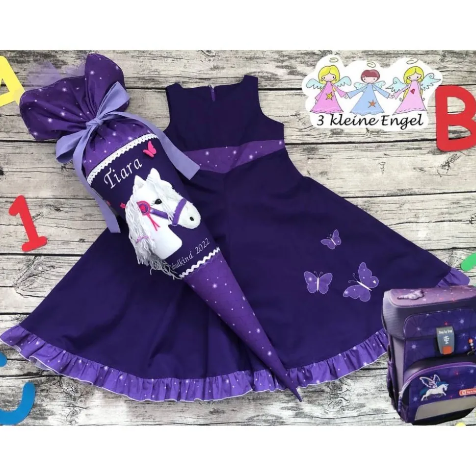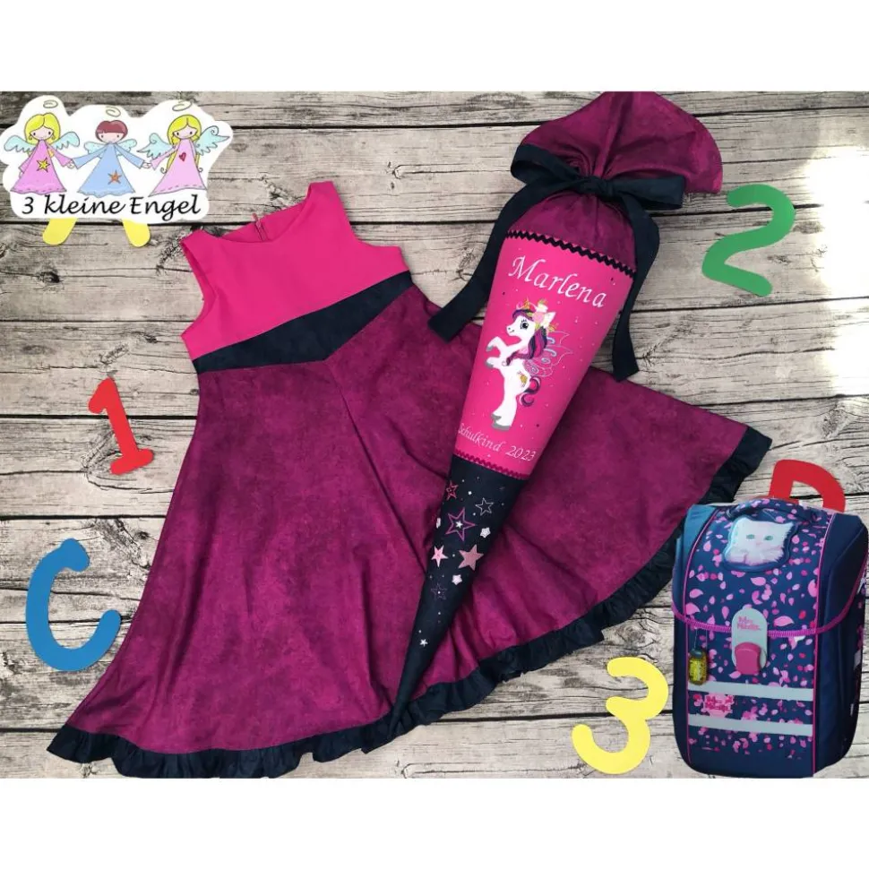 Hier habe ich ein ganz besonderes Angebot für euch, ich erstelle euch eine Schultüte und das passende Kleid nach dem Schnitt Unique von Farbenmix ganz nach euren Wunschvorgaben. Ihr dürft, Wunschfarben und Thema an mich weiter geben und ich zaubere euch ein ganz persönliches Unikat. Gerne stimme ich die beiden Sachen auch farblich auf euren Ranzen ab!