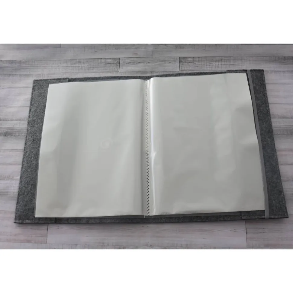 Die Filzhülle sind in den Farben Grau, Grün, Blau oder Rosa wählbar. Im Lieferumfang enthalten ist ein Hefter mit 20 eingeschweißten Klarsichtfolien, damit du deine Zeugnisse sauber und sicher abheften kannst.