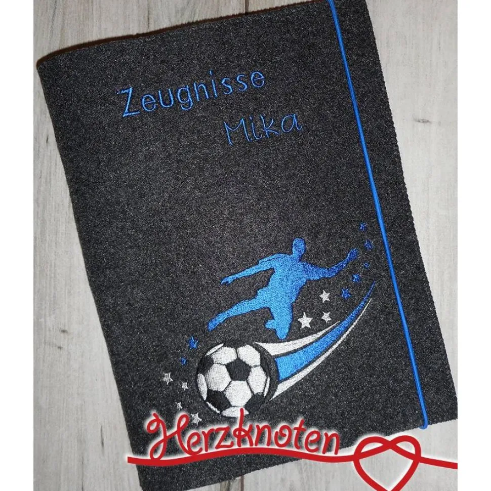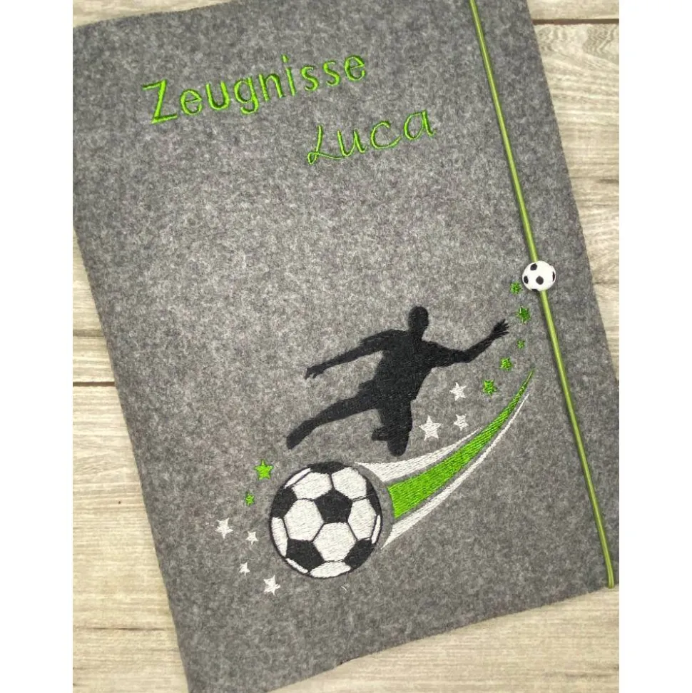 Gern mache ich die Mappe auch mit einer Gummikordel als Verschluß, einfach unter Optionen aussuchen. Wählbar auch neu mit kleinen aufgefädelten Fußball aus Silikon.
